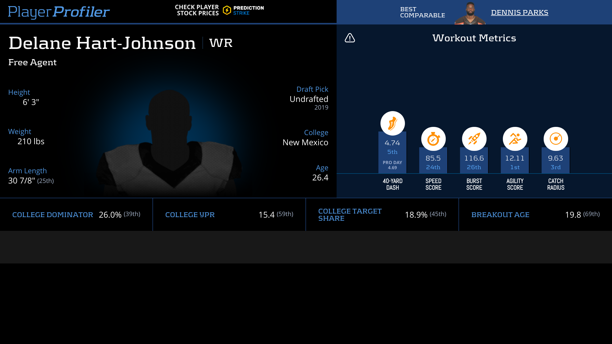 | Year Year | Games Games | Receptions Recs | Receiving Yards Rec Yds | Target Share Tgt Share | Catch Rate Catch Rate | Receiving Touchdowns Rec TDs | Special Teams Yards Special Teams | Age Age | School School |