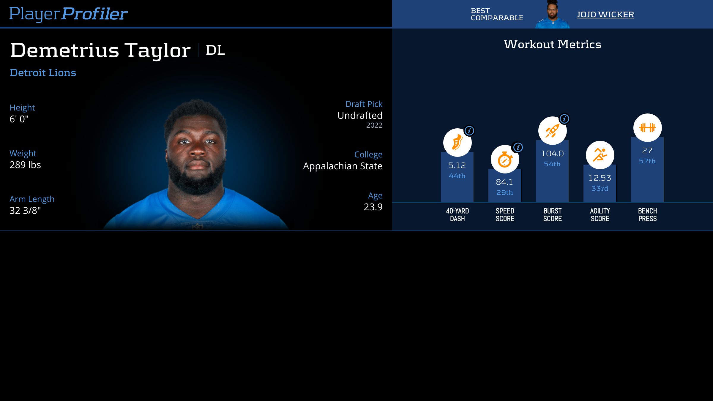Download all Demetrius Taylor advanced stats and metrics with Data Analysis.