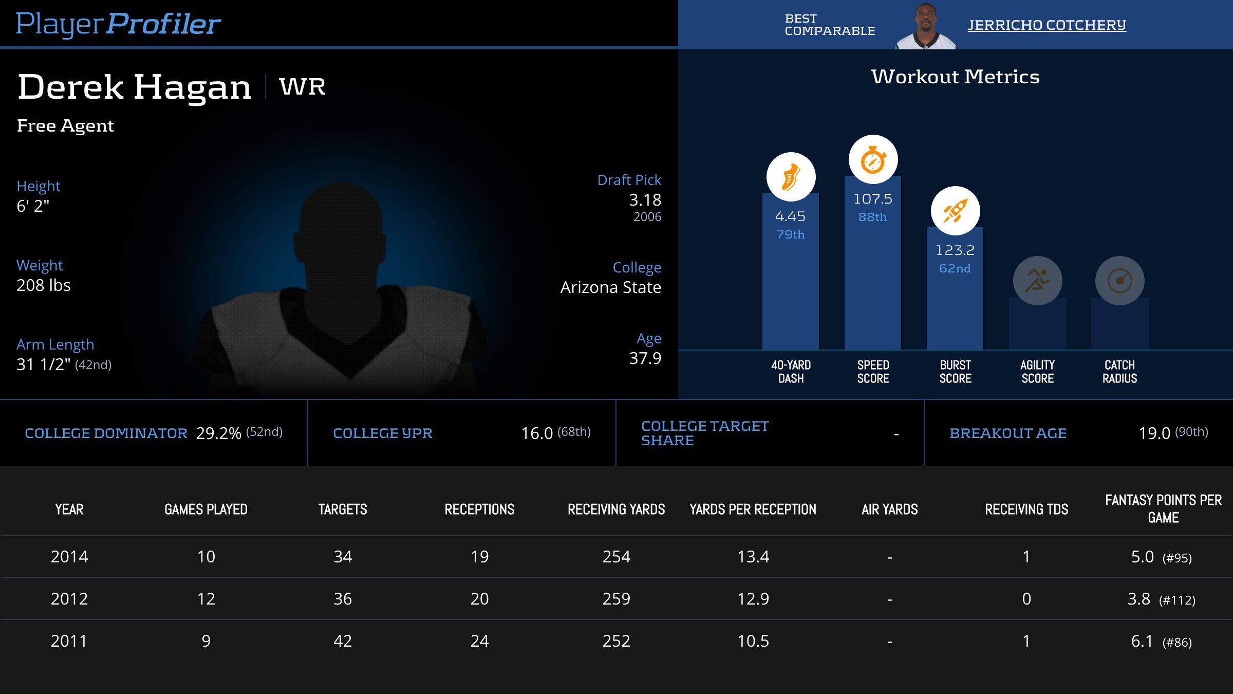 Year Games Tgts Rec Rec Yds YPR Air Yds Rec TD Fantasy Pts/Game