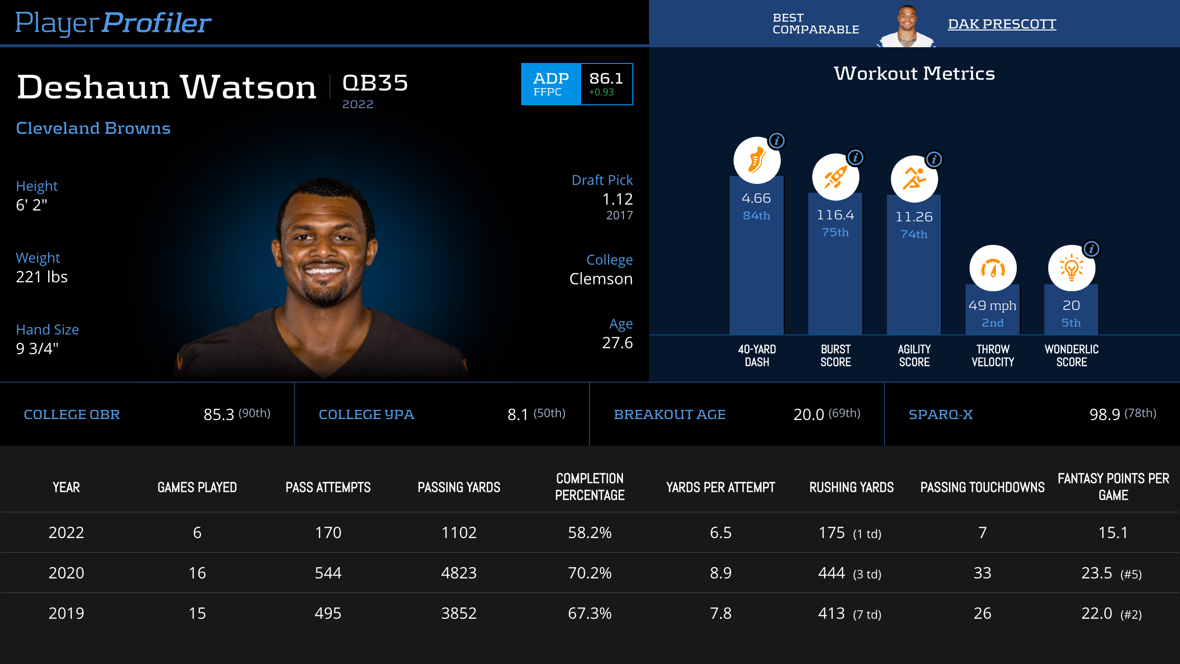 | 6 | PHI | 23 | 69.6% | 168 (130 air) | 7.3 | -- | 17 | -- | 8.4 (#26) |