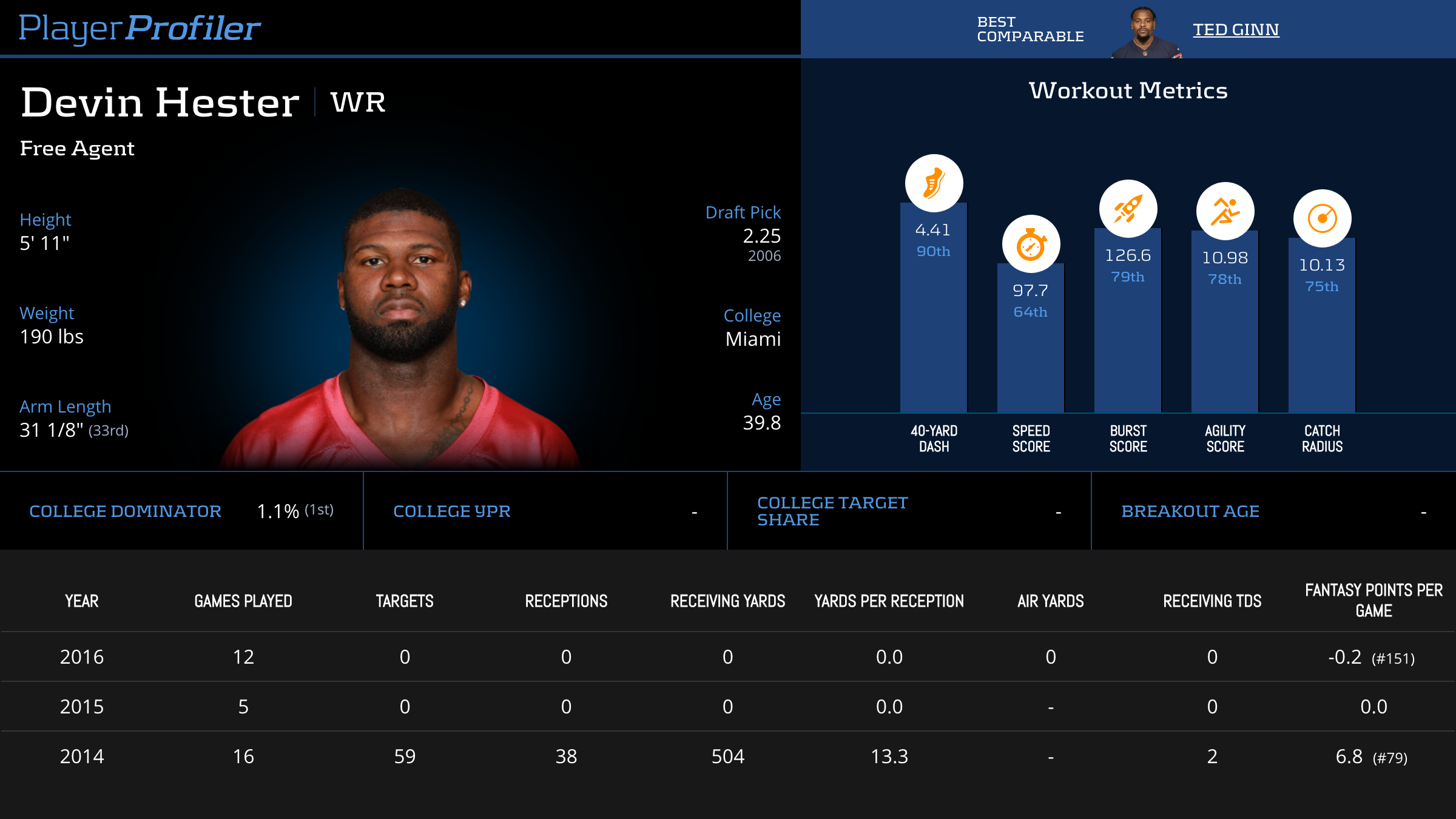 Box score statistics such as targets, yards, touchdowns, and fantasy points per target are updated the next day. Advanced stats and metrics are updated later in the week during the NFL season.