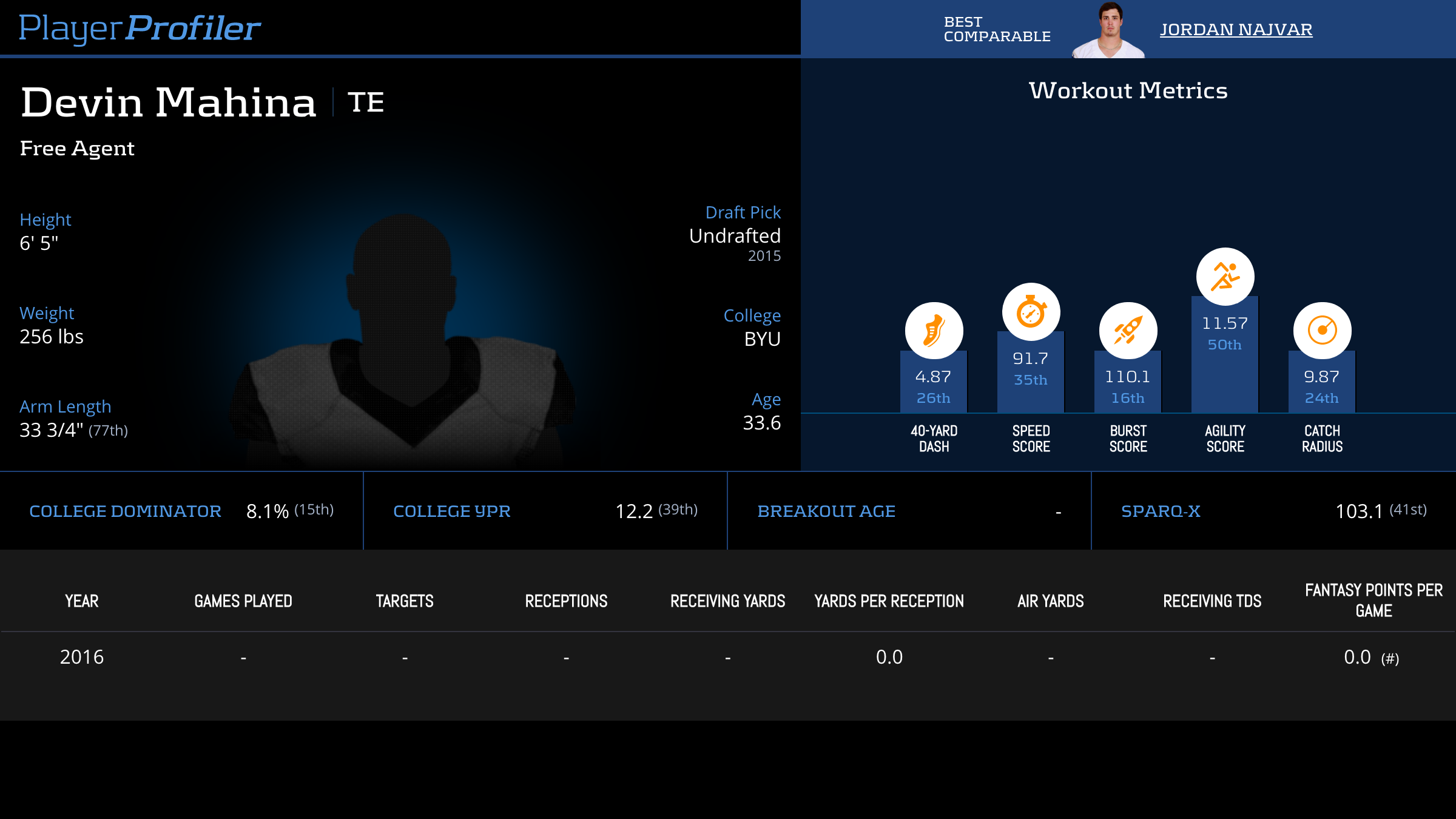 | Year Year | Games Games | Receptions Recs | Receiving Yards Rec Yds | Target Share Tgt Share | Catch Rate Catch Rate | Receiving Touchdowns Rec TDs | Special Teams Yards Special Teams | Age Age | School School |