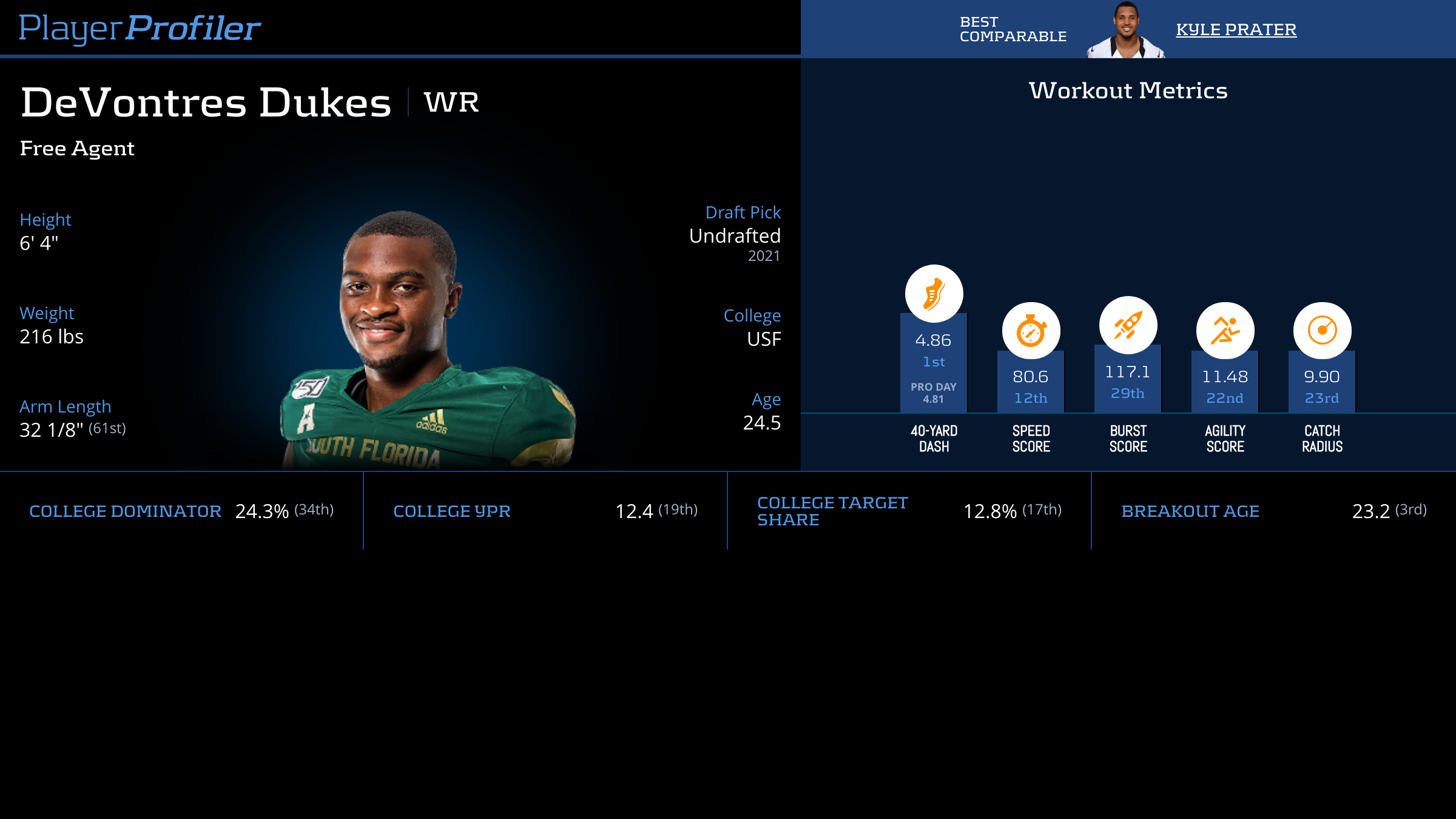 | Year Year | Games Games | Receptions Recs | Receiving Yards Rec Yds | Target Share Tgt Share | Catch Rate Catch Rate | Receiving Touchdowns Rec TDs | Special Teams Yards Special Teams | Age Age | School School |