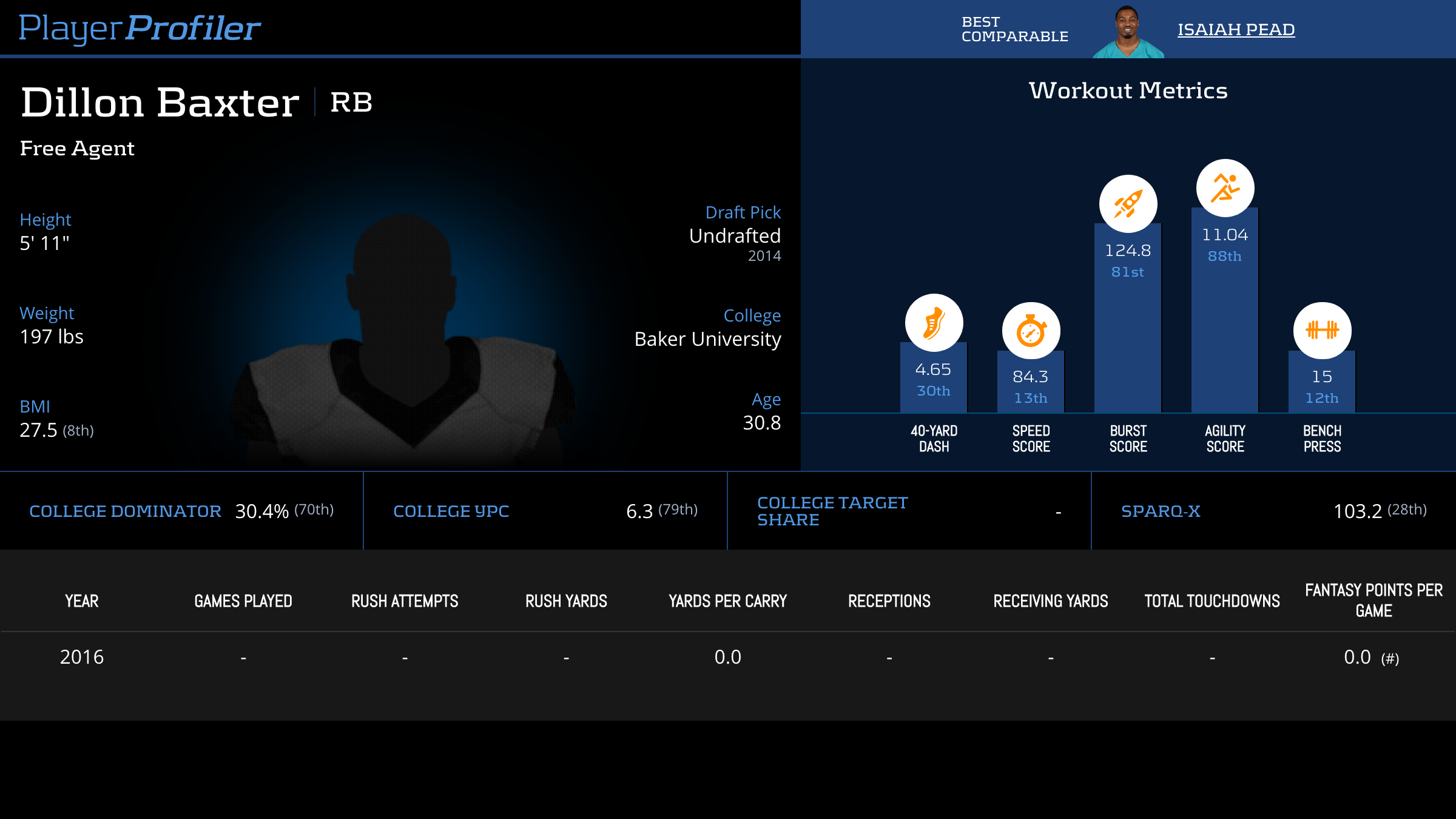 | Year Year | Games Games | Rush Attempts Rush Atts | Rushing Yards Rush Yrds | Total Touchdowns TDs | Receptions Rec | Receiving Yards Rec Yrds | Target Share Tgt Share | Age Age | School School |