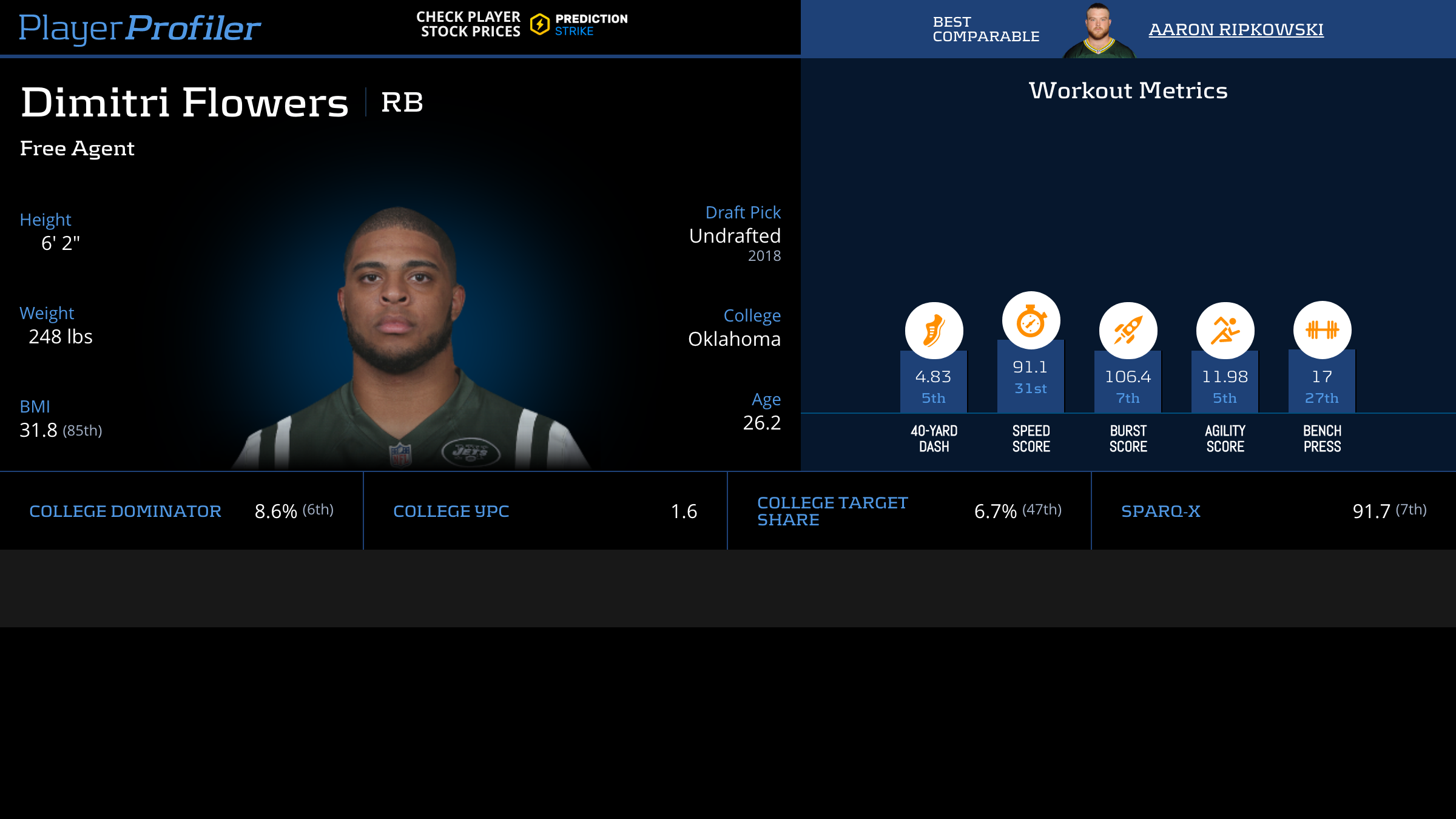 | Year Year | Games Games | Rush Attempts Rush Atts | Rushing Yards Rush Yrds | Total Touchdowns TDs | Receptions Rec | Receiving Yards Rec Yrds | Target Share Tgt Share | Age Age | School School |