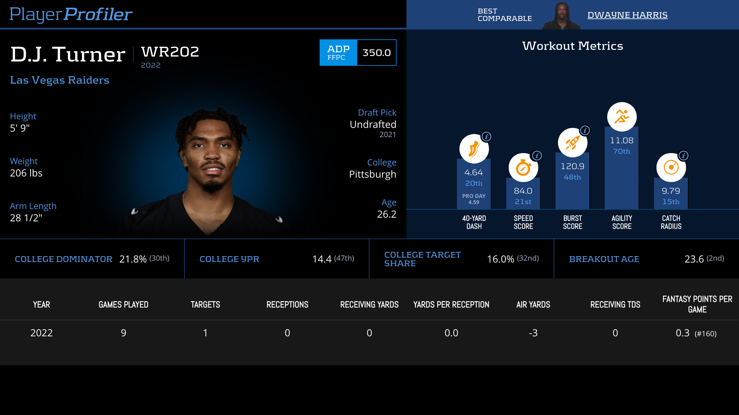 Box score statistics such as targets, yards, touchdowns, and fantasy points per target are updated the next day. Advanced stats and metrics are updated later in the week during the NFL season.