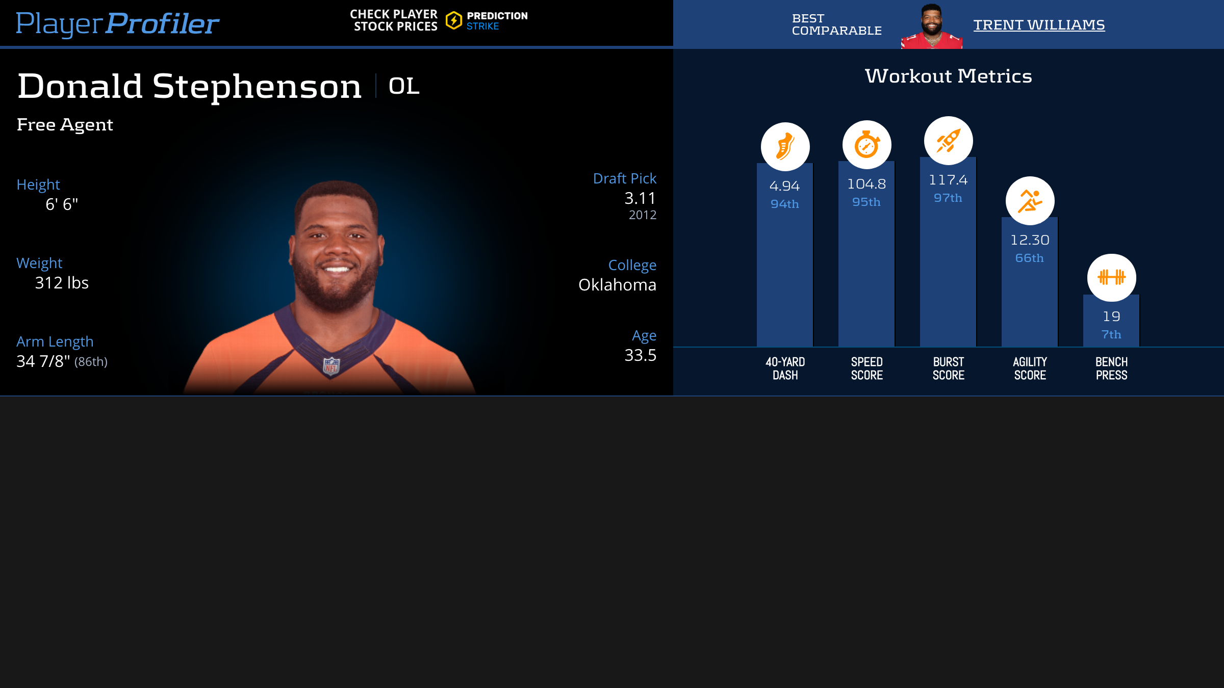 Download all Donald Stephenson advanced stats and metrics with Data Analysis.