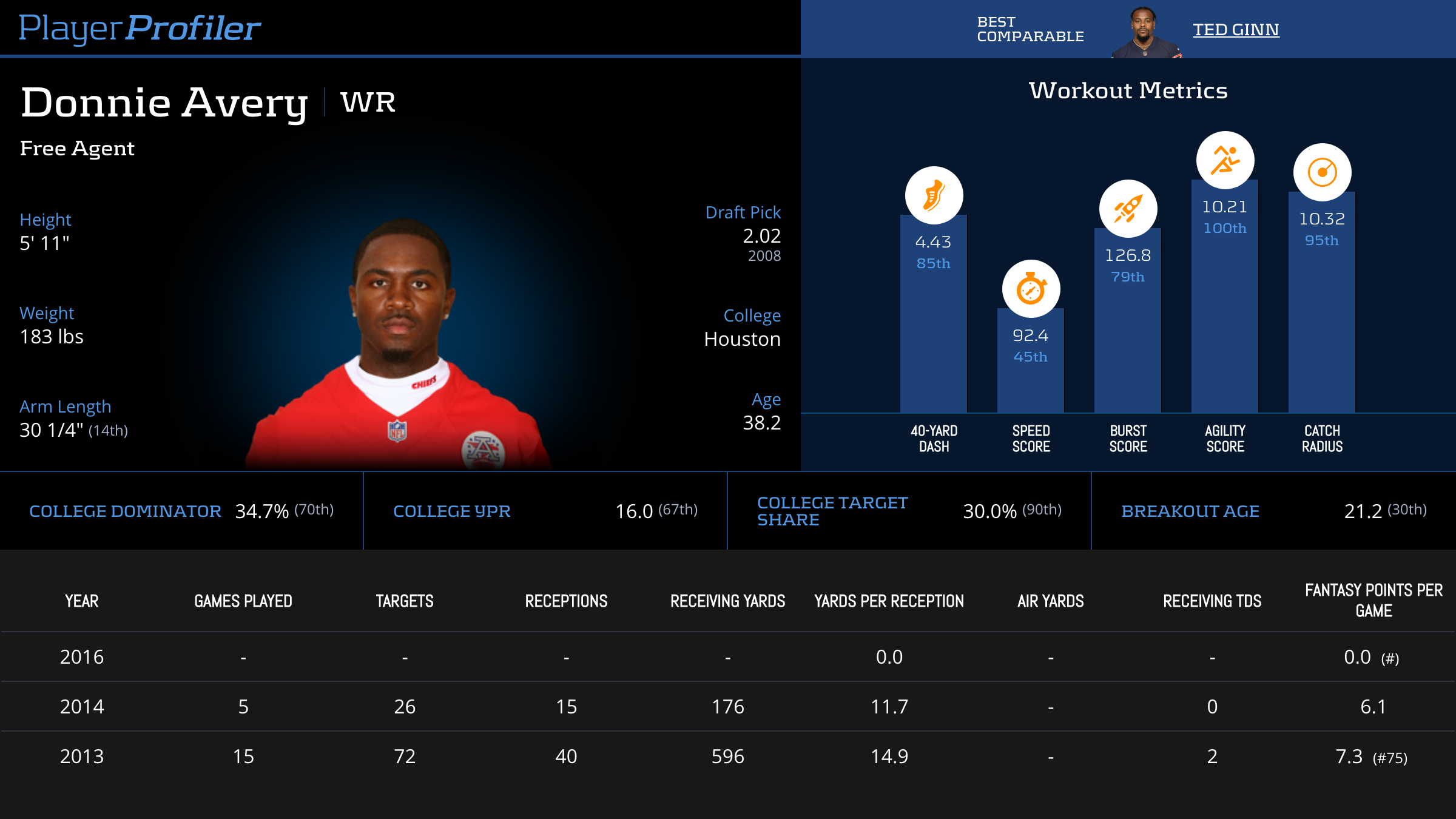 Box score statistics such as targets, yards, touchdowns, and fantasy points per target are updated the next day. Advanced stats and metrics are updated later in the week during the NFL season.