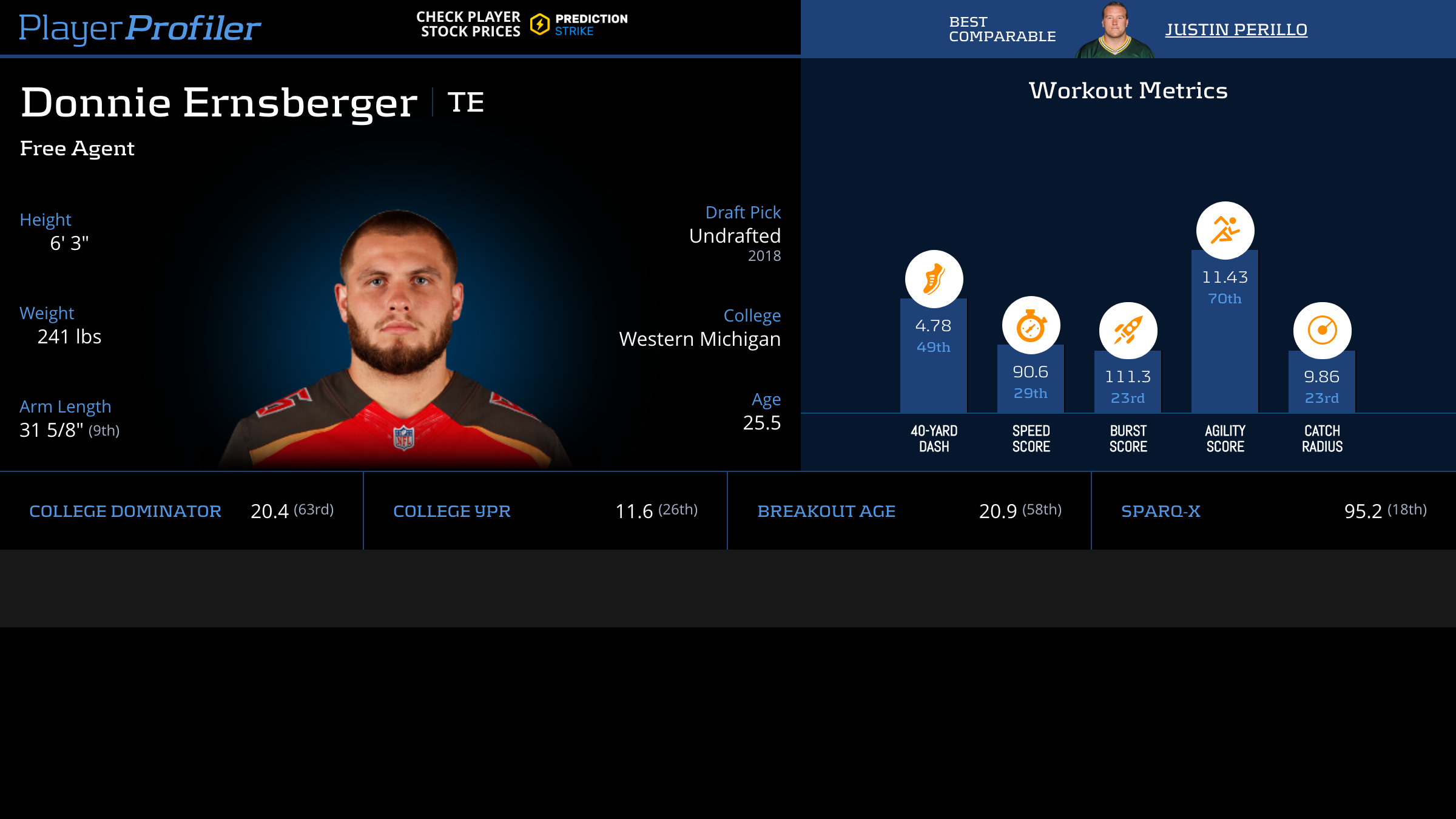 | Year Year | Games Games | Receptions Recs | Receiving Yards Rec Yds | Target Share Tgt Share | Catch Rate Catch Rate | Receiving Touchdowns Rec TDs | Special Teams Yards Special Teams | Age Age | School School |