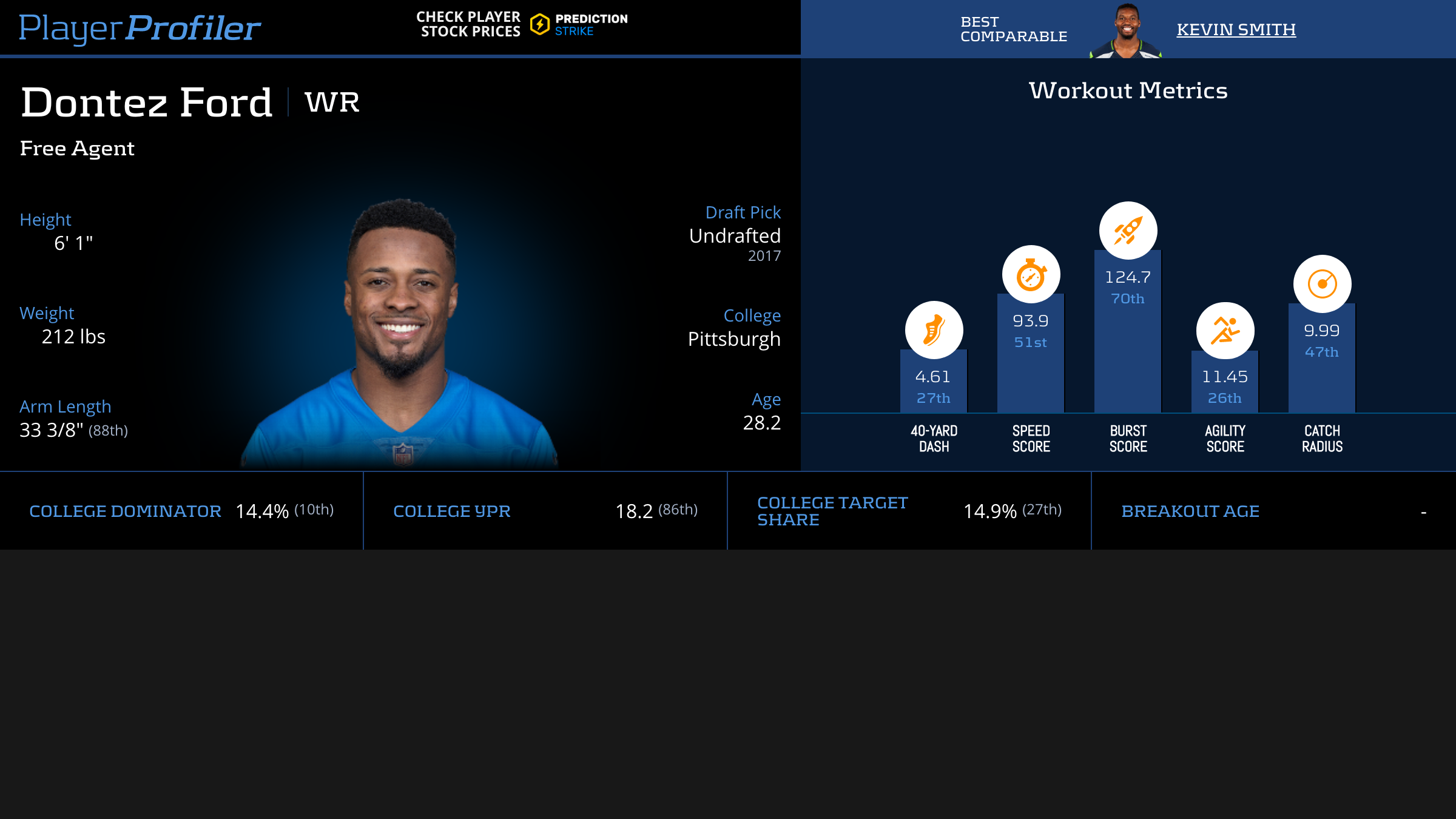 | Year Year | Games Games | Receptions Recs | Receiving Yards Rec Yds | Target Share Tgt Share | Catch Rate Catch Rate | Receiving Touchdowns Rec TDs | Special Teams Yards Special Teams | Age Age | School School |