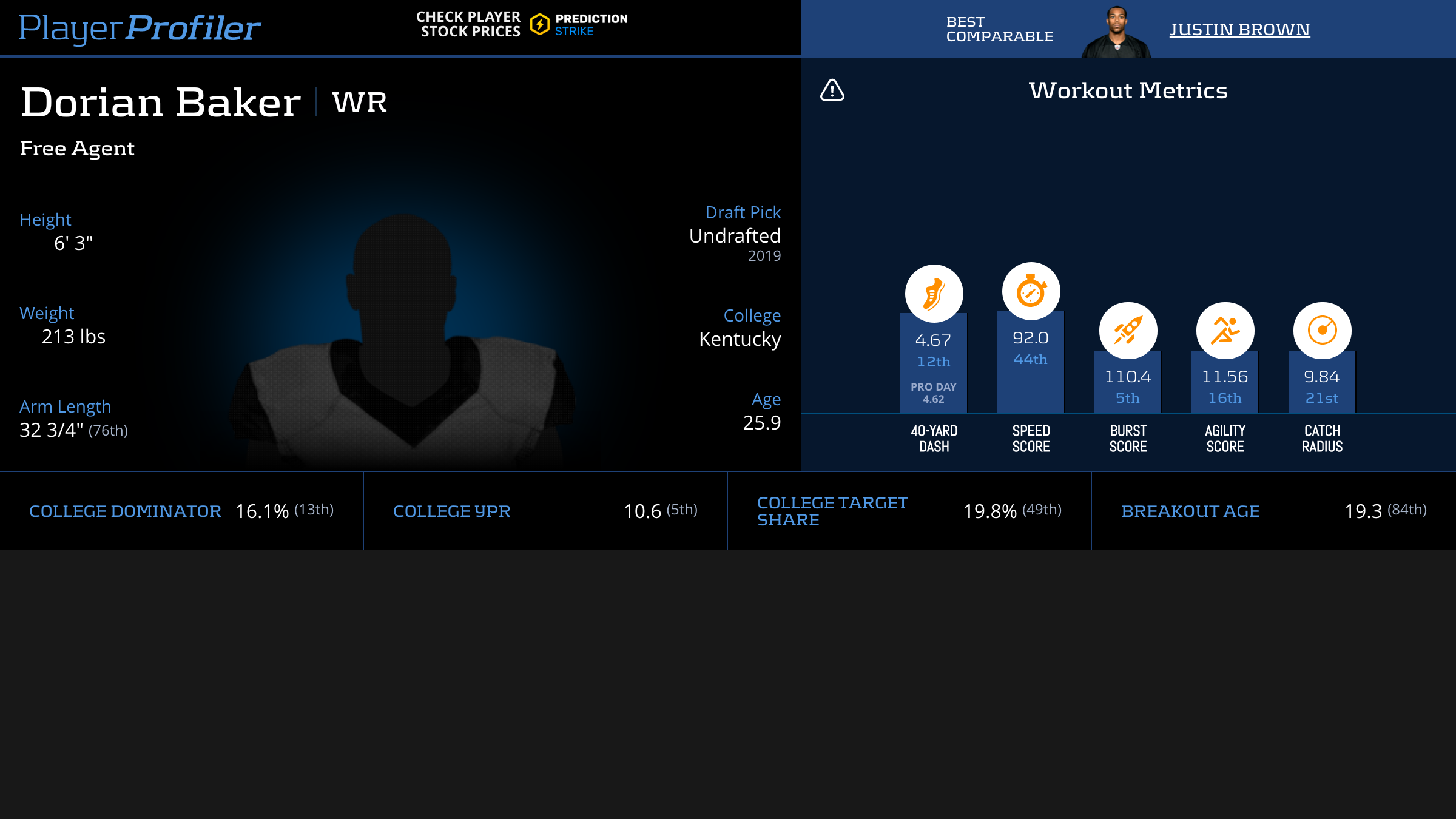 | Year Year | Games Games | Receptions Recs | Receiving Yards Rec Yds | Target Share Tgt Share | Catch Rate Catch Rate | Receiving Touchdowns Rec TDs | Special Teams Yards Special Teams | Age Age | School School |