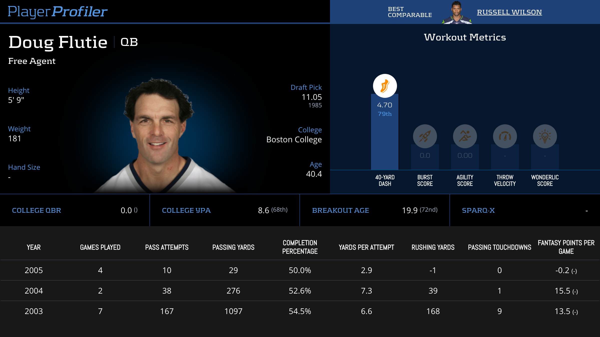 | Year Year | Games Games | Pass Attempts Pass Atts | Passing Yards Pass Yds | Yards Per Attempt YPA | Completion Percentage Comp % | Passing Touchdowns Pass TDs | Rushing Yards Rush Yds | Age Age | School School |