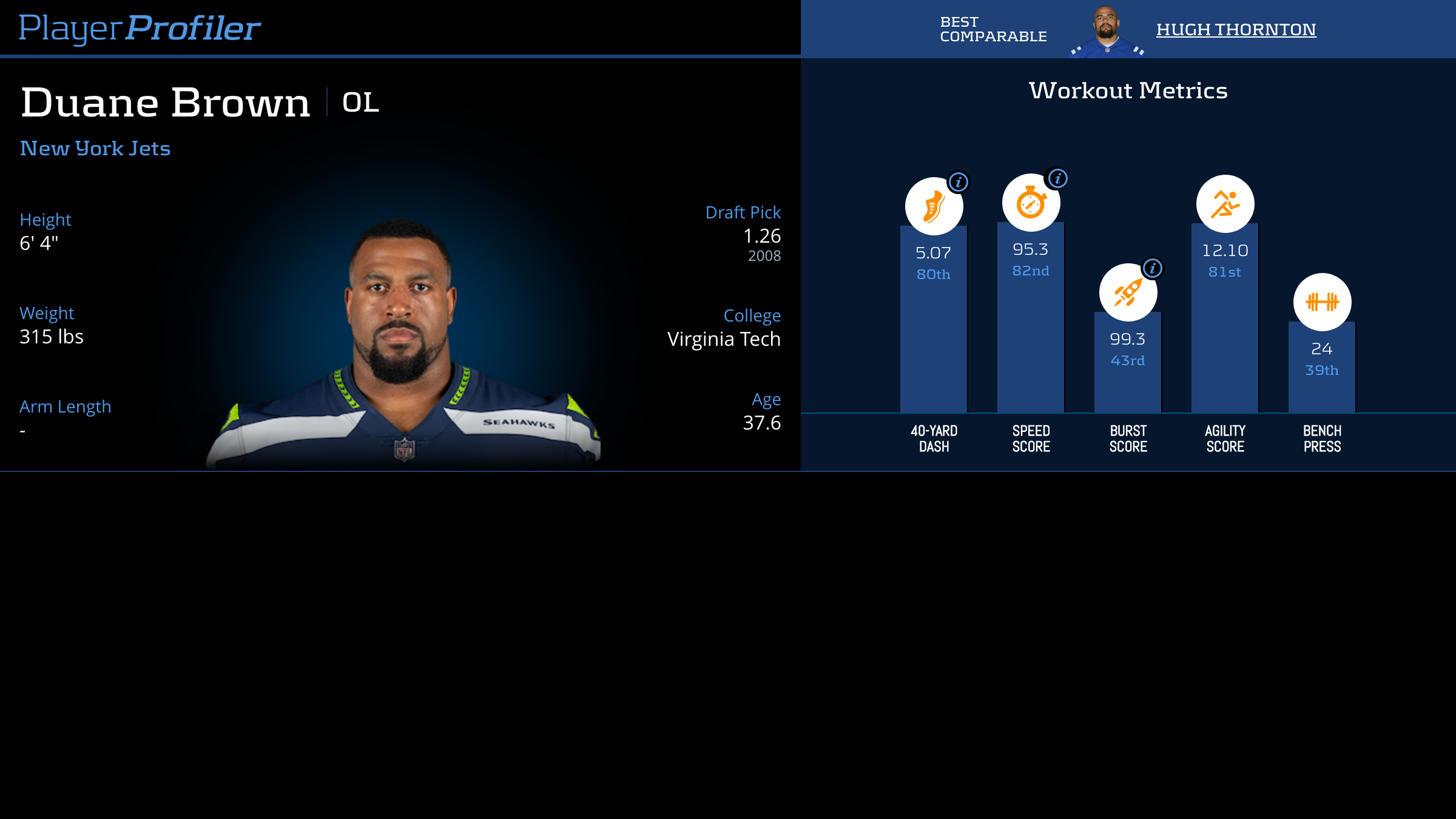 Download all Duane Brown advanced stats and metrics with Data Analysis.