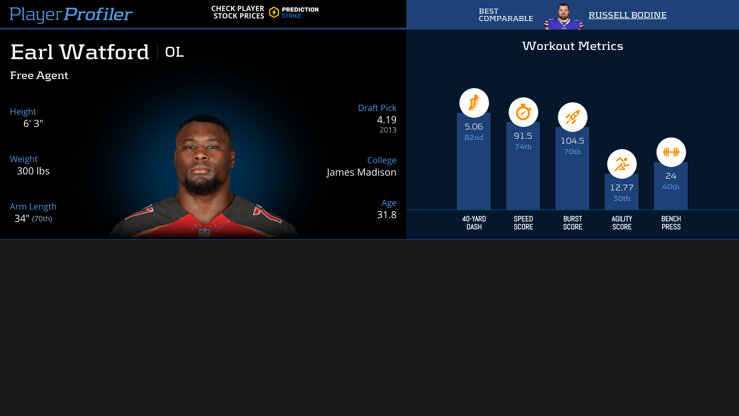 Download all Earl Watford advanced stats and metrics with Data Analysis.