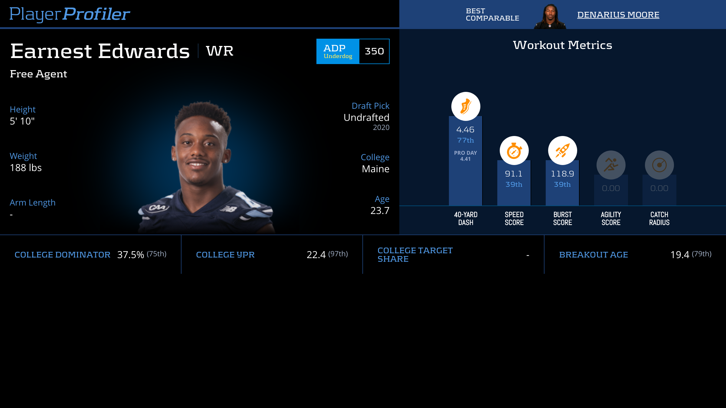 | Year Year | Games Games | Receptions Recs | Receiving Yards Rec Yds | Target Share Tgt Share | Catch Rate Catch Rate | Receiving Touchdowns Rec TDs | Special Teams Yards Special Teams | Age Age | School School |
