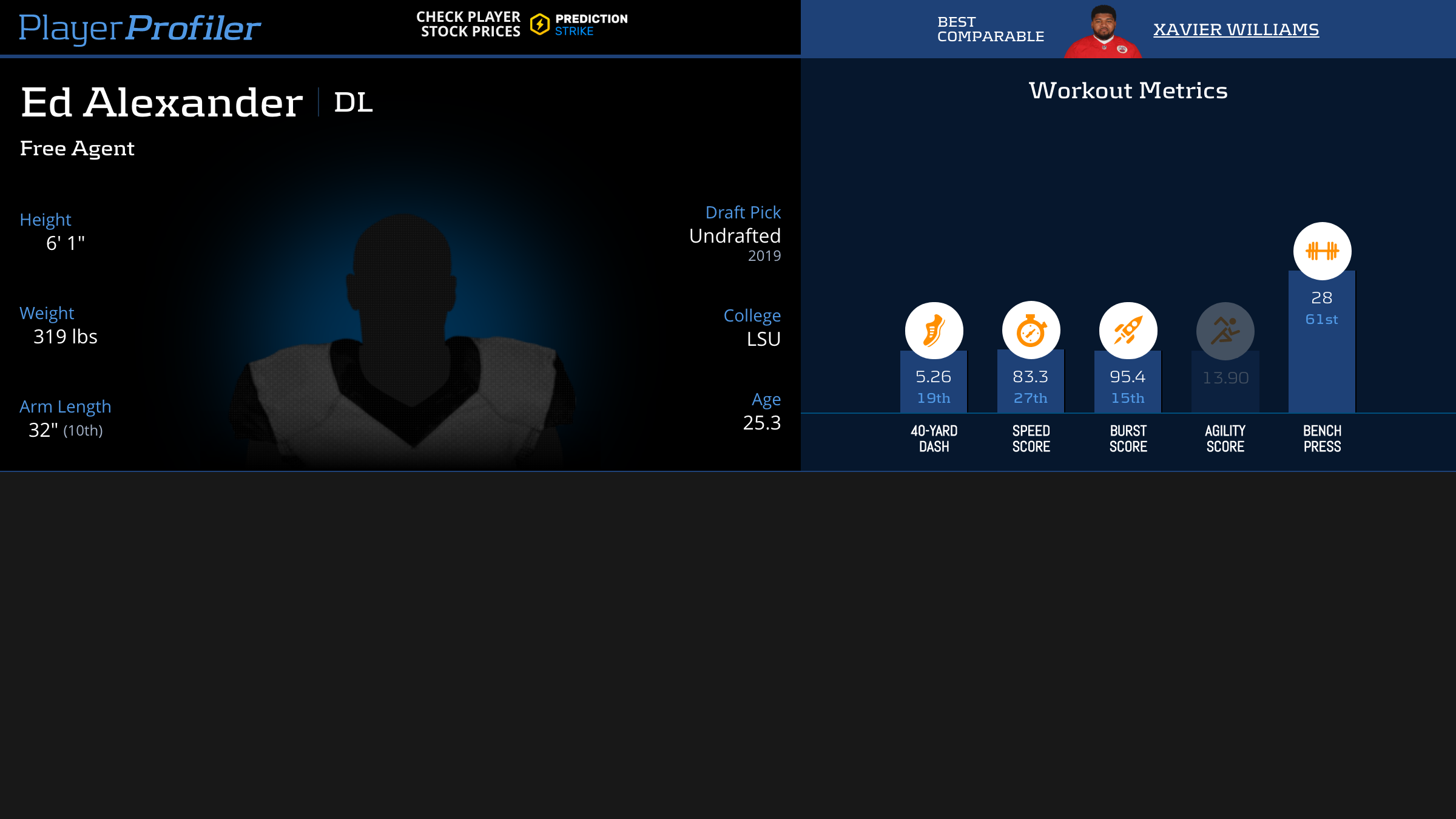 Download all Ed Alexander advanced stats and metrics with Data Analysis.