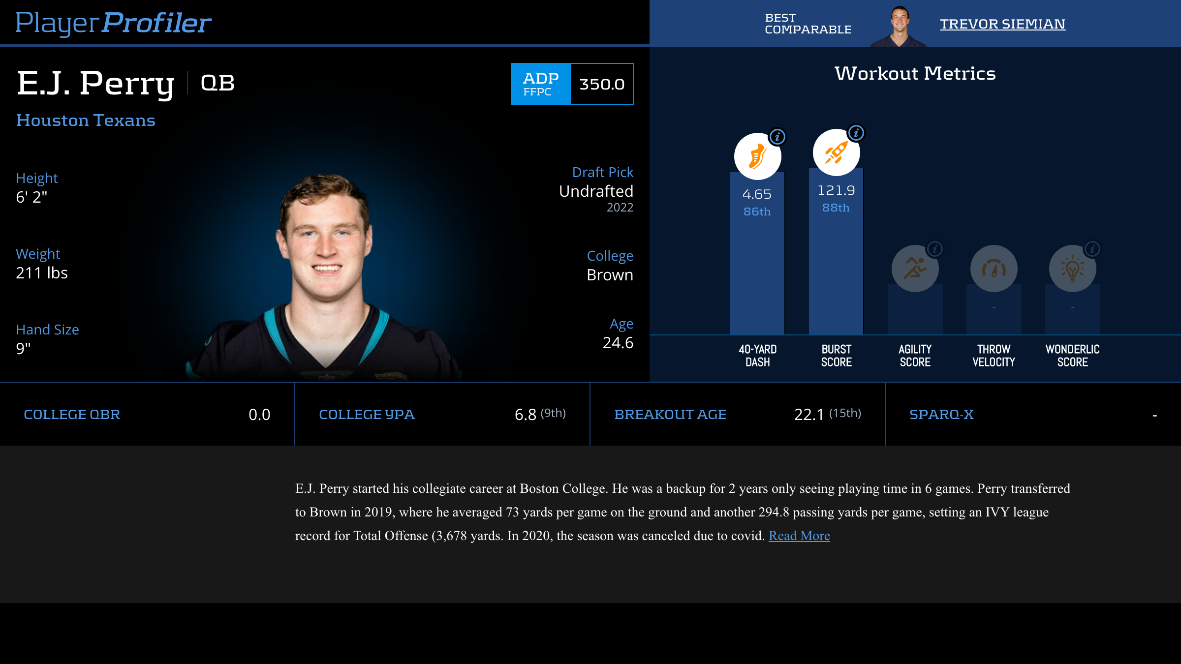 Explosive Play Rating (EPX) is a comprehensive rating of a player's explosiveness, factoring in per-play efficiency and total volume of explosive plays created. EPX is scaled so 100 is league-average at each position and blends passing, rushing, and receiving according to each player's usage. Pass plays over 20 yards or rush plays over 10 yards are considered explosive.