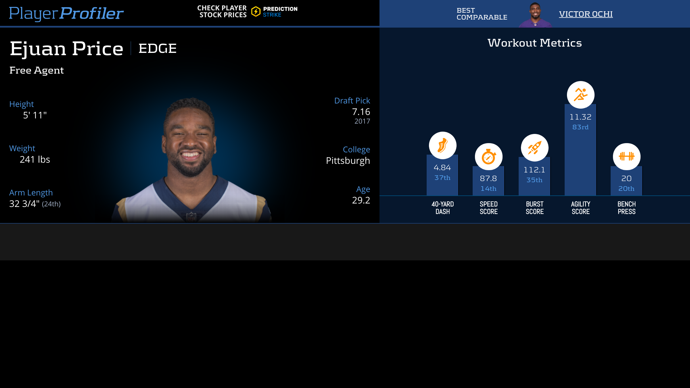 Player Popularity Index (PPI) ranks PlayerProfiler page views over the last 30 days. For example, the No. 1 PPI player page is the most frequently visited page in recent weeks.