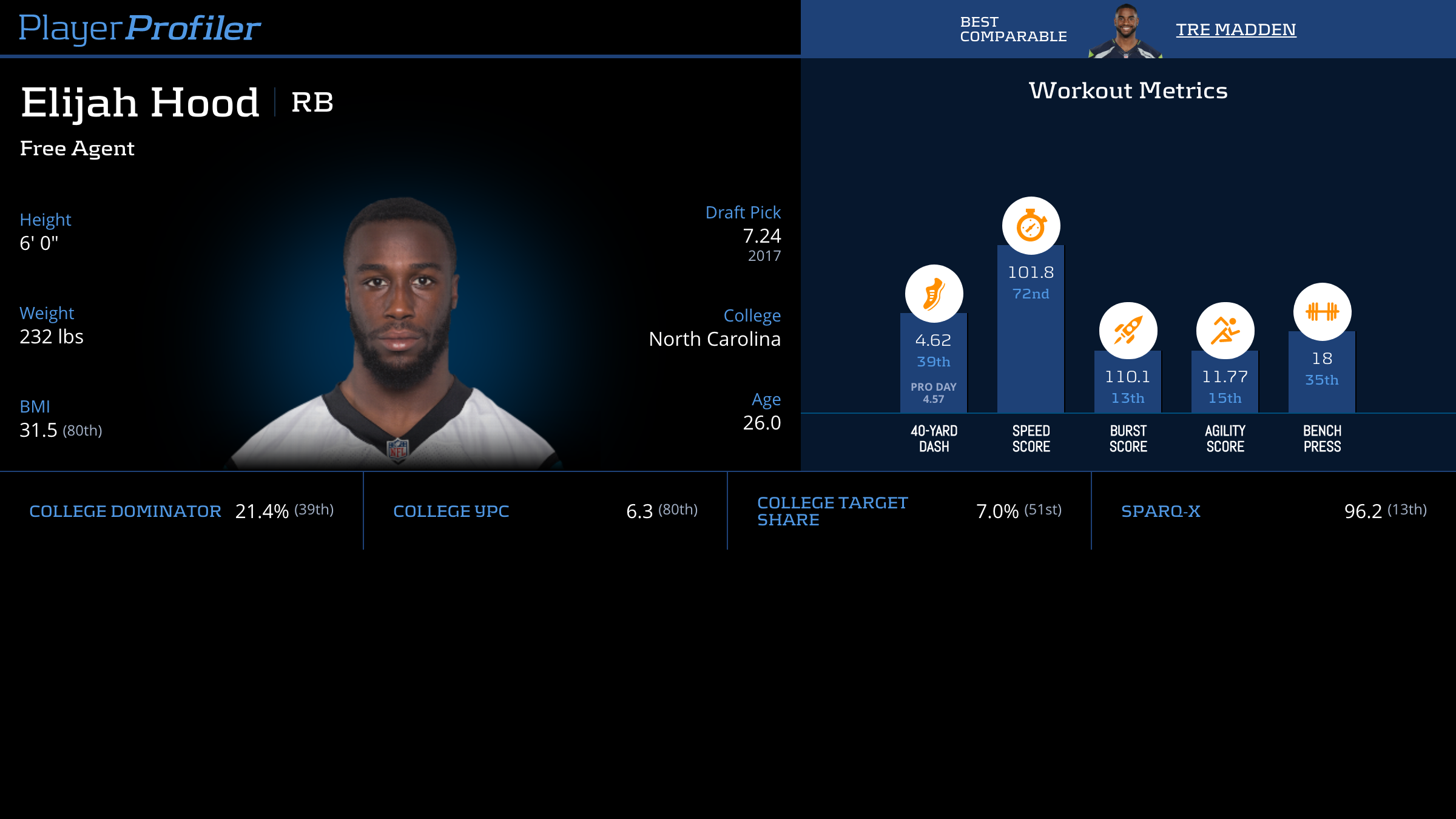 | Year Year | Games Games | Rush Attempts Rush Atts | Rushing Yards Rush Yrds | Total Touchdowns TDs | Receptions Rec | Receiving Yards Rec Yrds | Target Share Tgt Share | Age Age | School School |