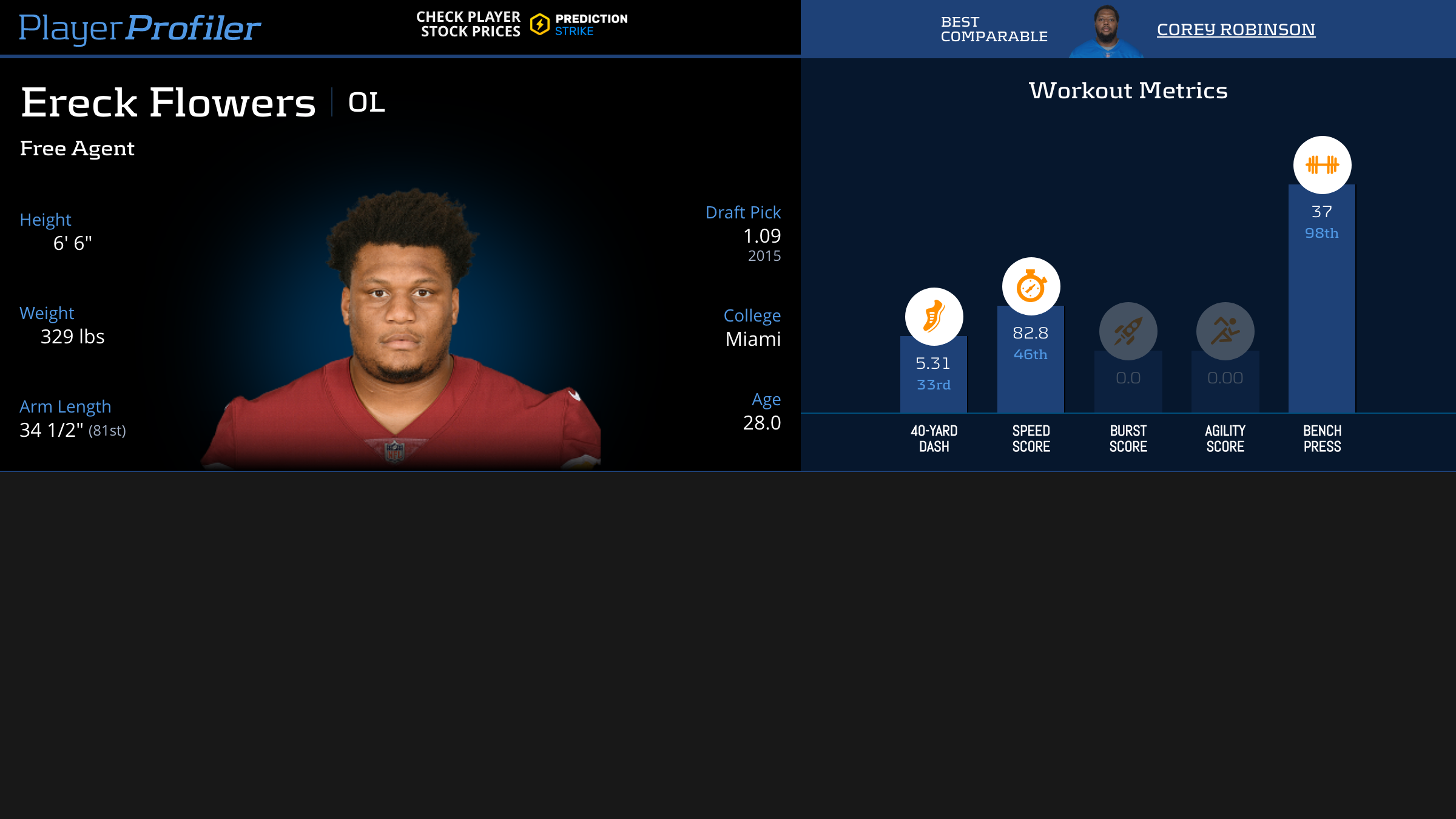 Download all Ereck Flowers advanced stats and metrics with Data Analysis.