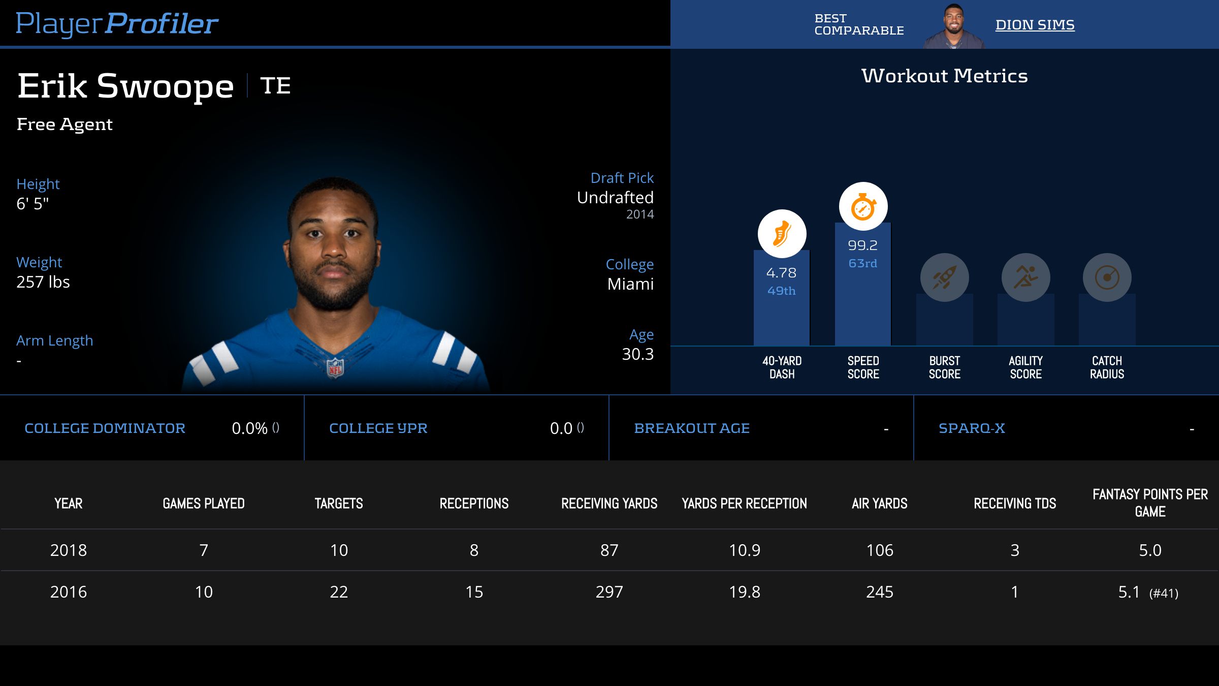 Box score statistics such as targets, yards, touchdowns, and fantasy points per target are updated the next day. Advanced stats and metrics are updated later in the week during the NFL season.