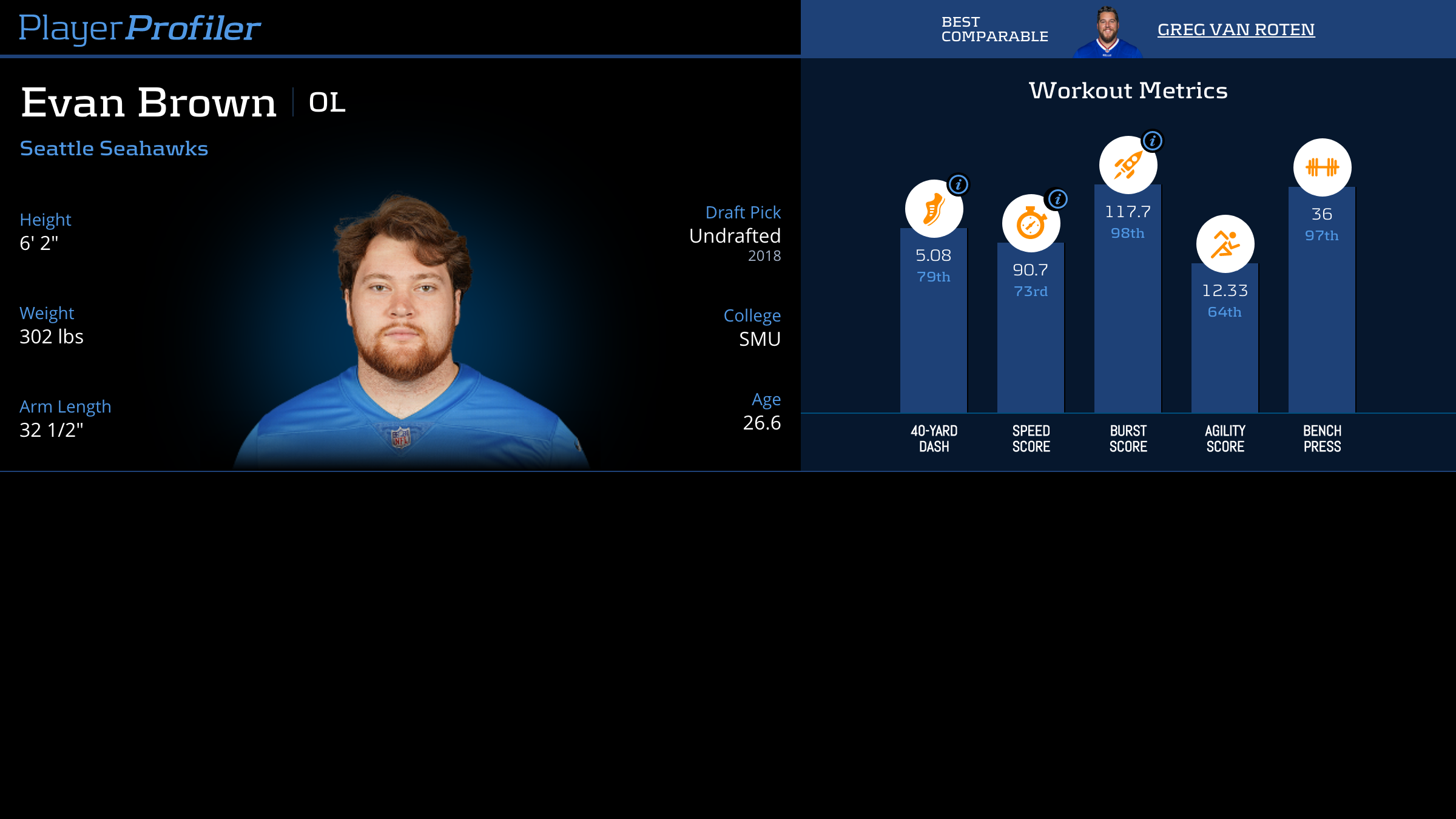Download all Evan Brown advanced stats and metrics with Data Analysis.