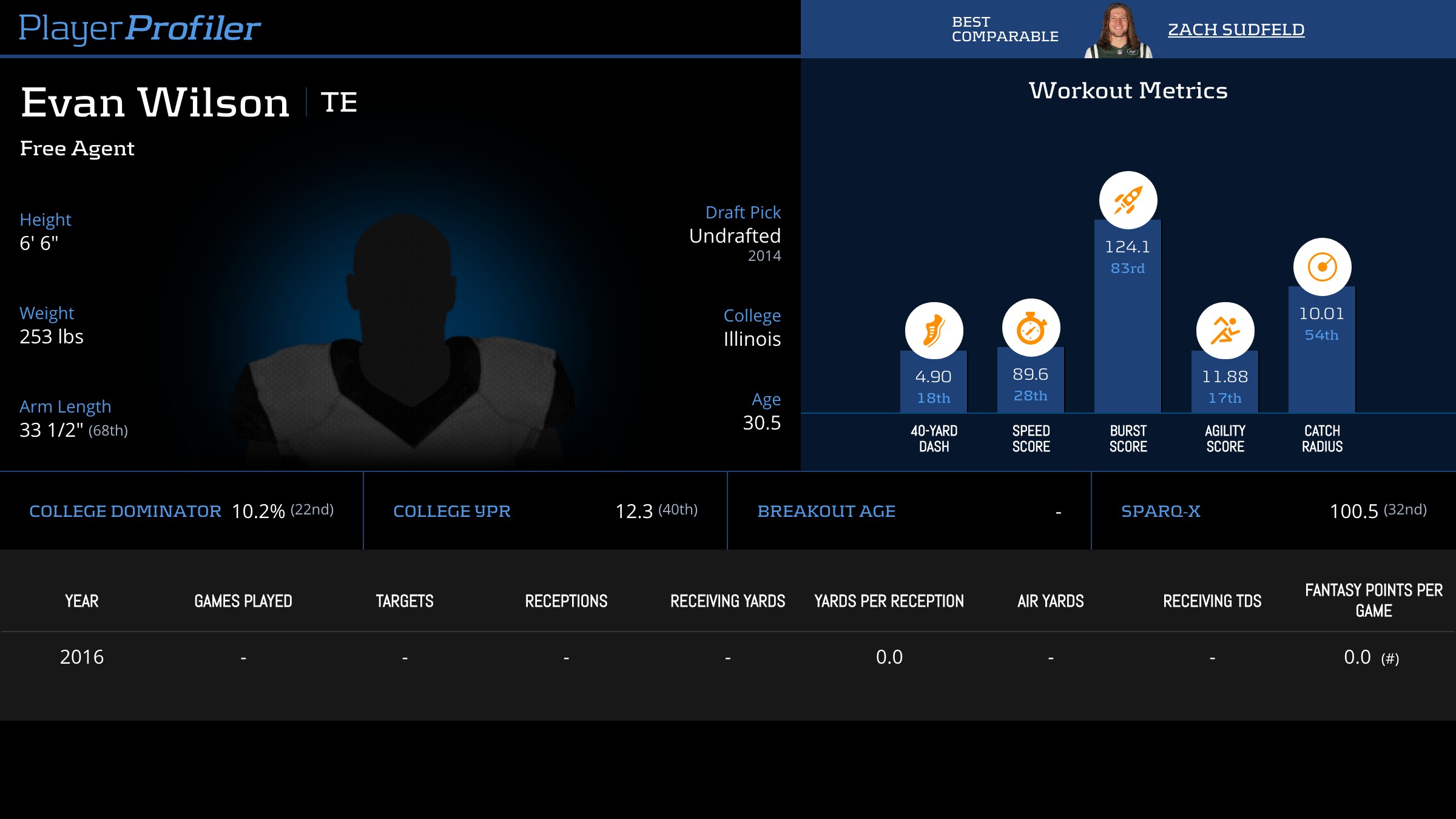 | Year Year | Games Games | Receptions Recs | Receiving Yards Rec Yds | Target Share Tgt Share | Catch Rate Catch Rate | Receiving Touchdowns Rec TDs | Special Teams Yards Special Teams | Age Age | School School |