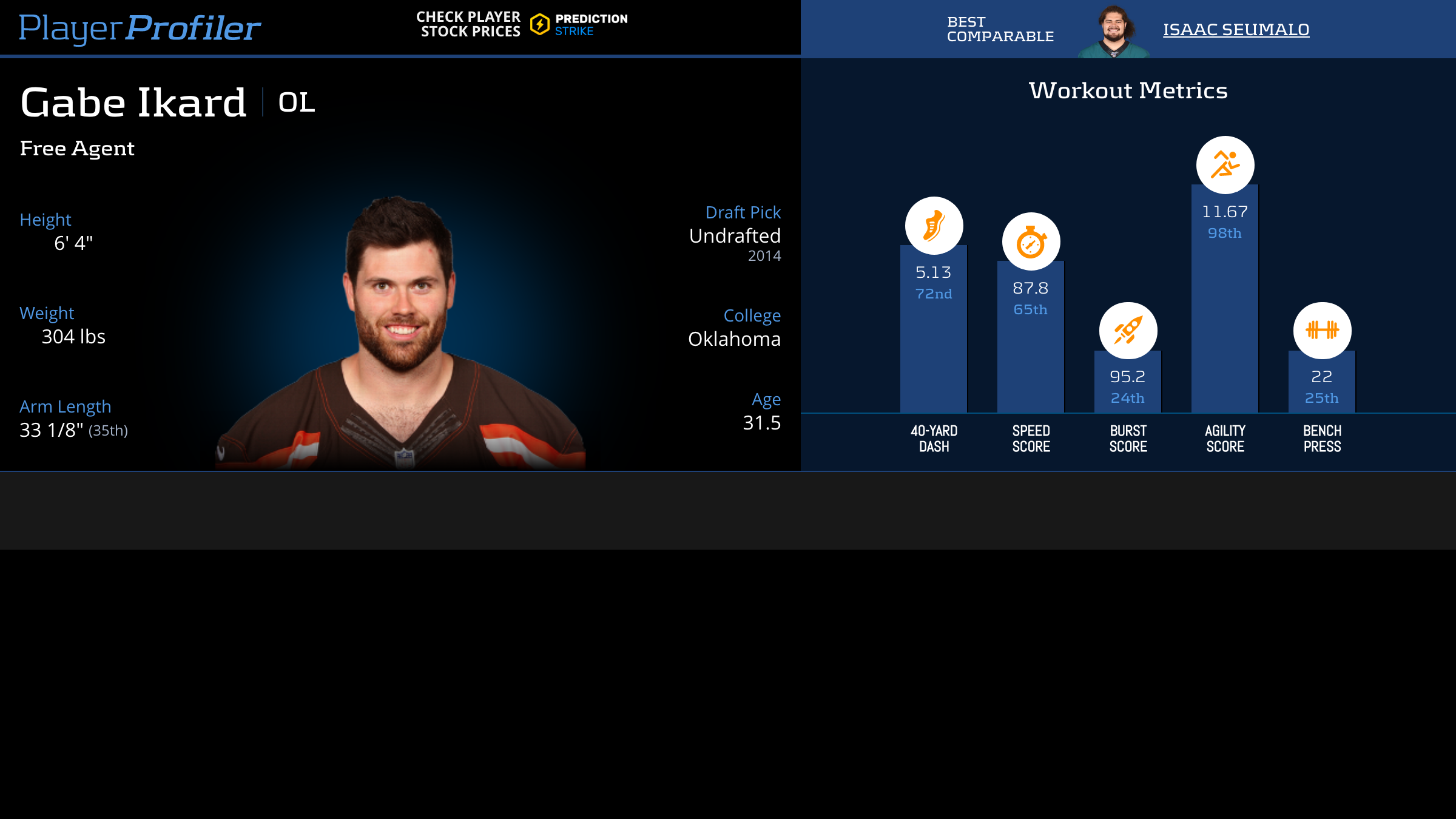Download all Gabe Ikard advanced stats and metrics with Data Analysis.
