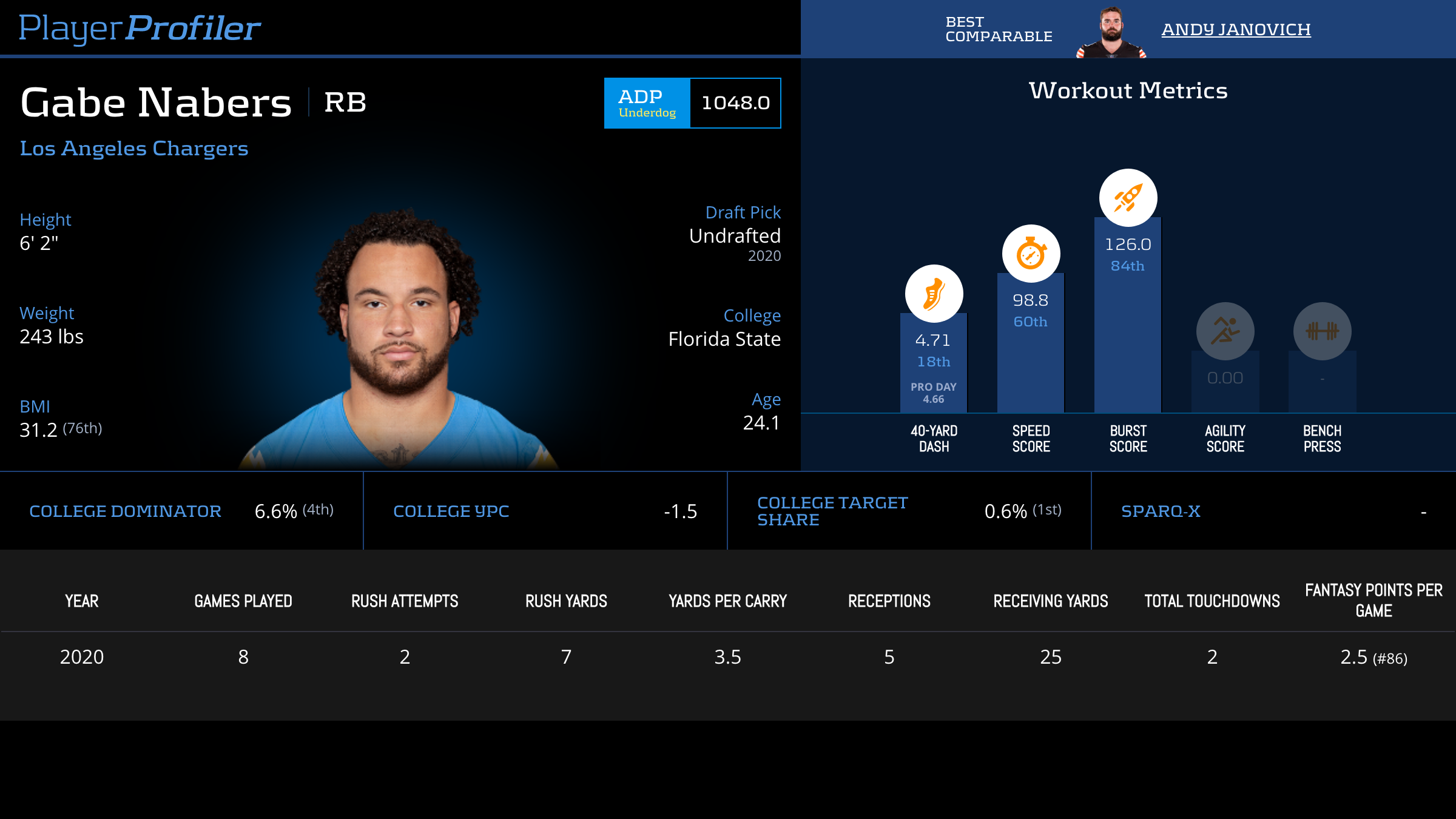 Box score statistics such as targets, yards, touchdowns, and fantasy points per target are updated the next day. Advanced stats and metrics are updated later in the week during the NFL season.