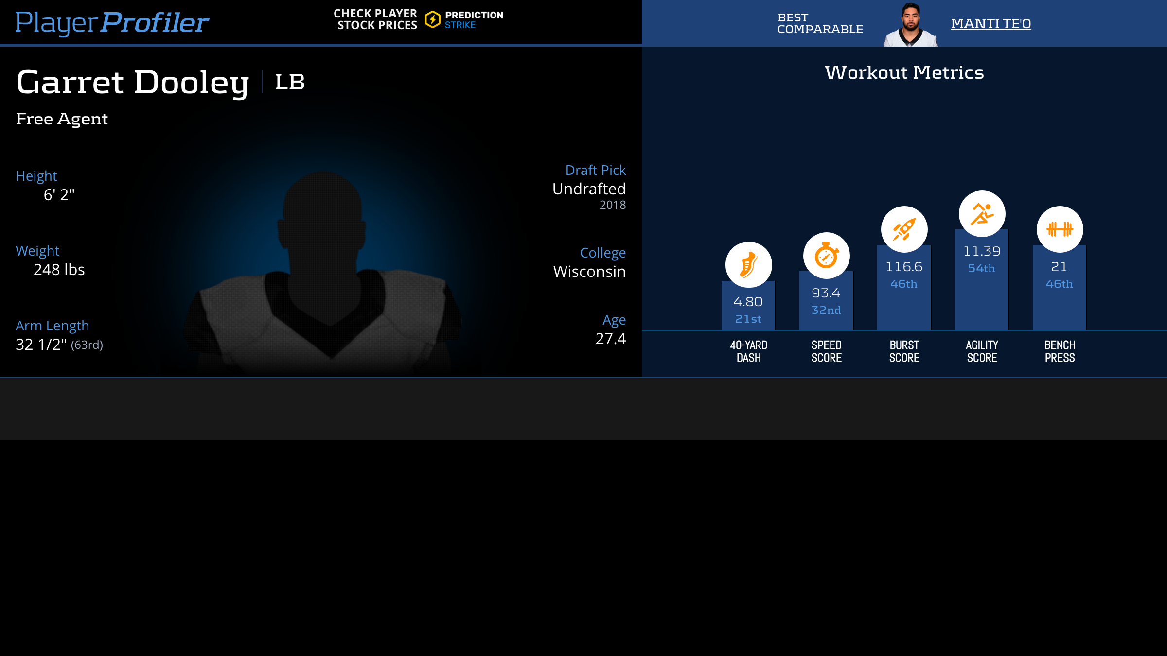 Download all Garret Dooley advanced stats and metrics with Data Analysis.