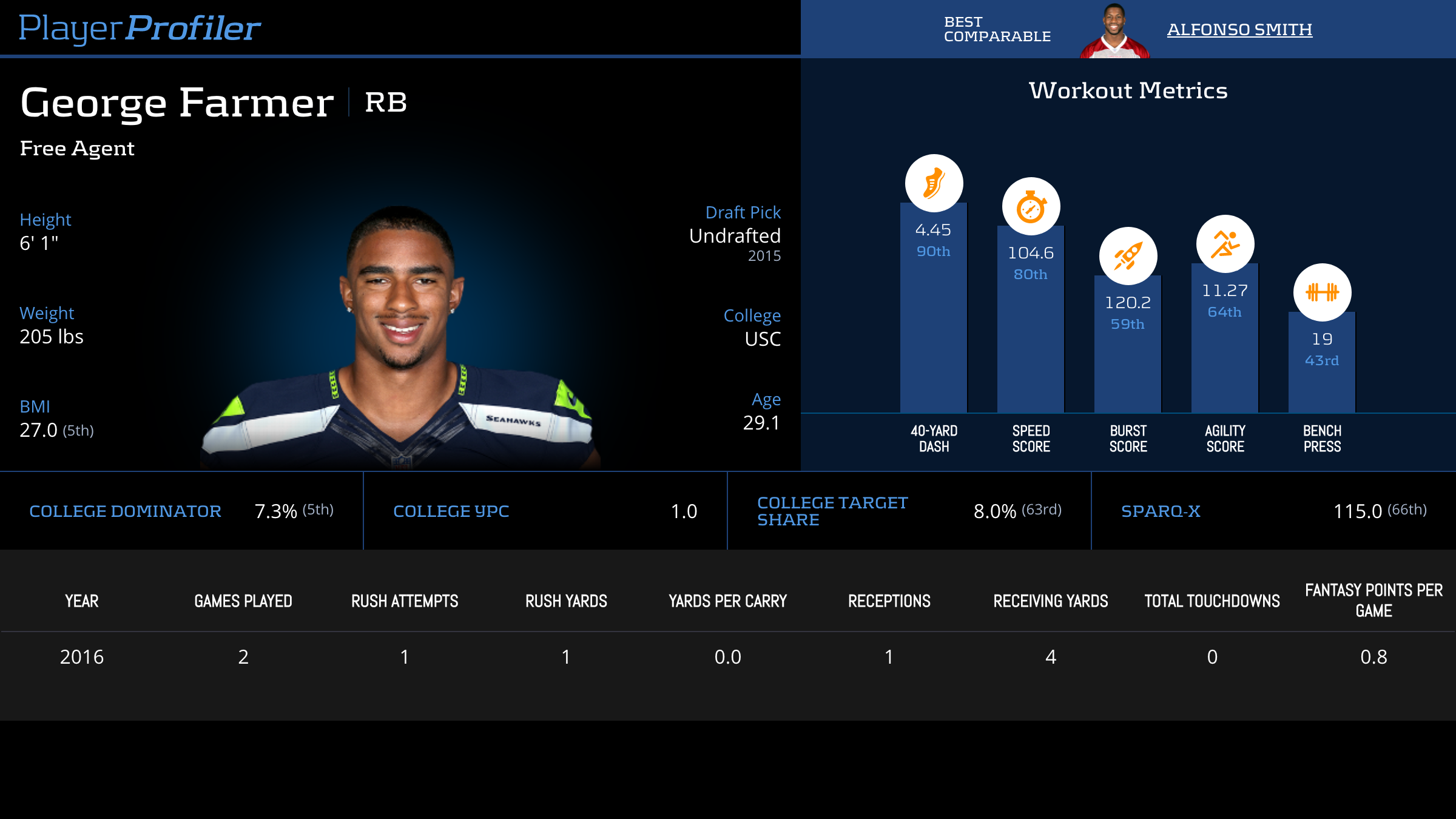 Box score statistics such as targets, yards, touchdowns, and fantasy points per target are updated the next day. Advanced stats and metrics are updated later in the week during the NFL season.