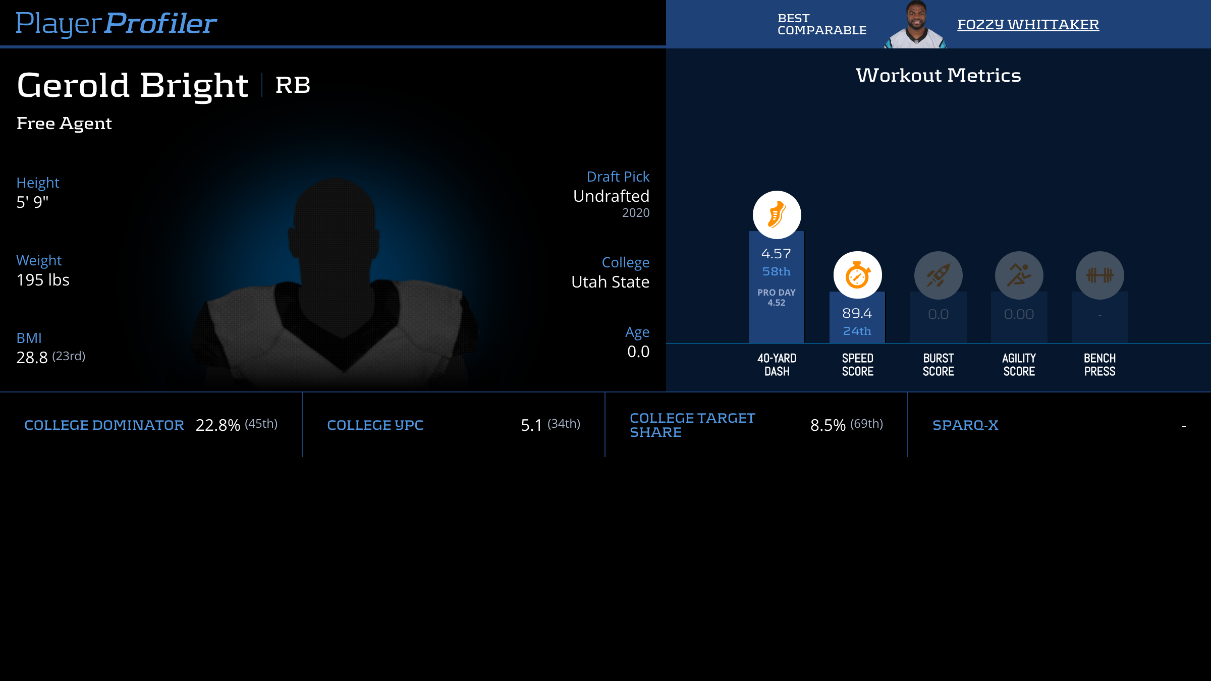 | Year Year | Games Games | Rush Attempts Rush Atts | Rushing Yards Rush Yrds | Total Touchdowns TDs | Receptions Rec | Receiving Yards Rec Yrds | Target Share Tgt Share | Age Age | School School |