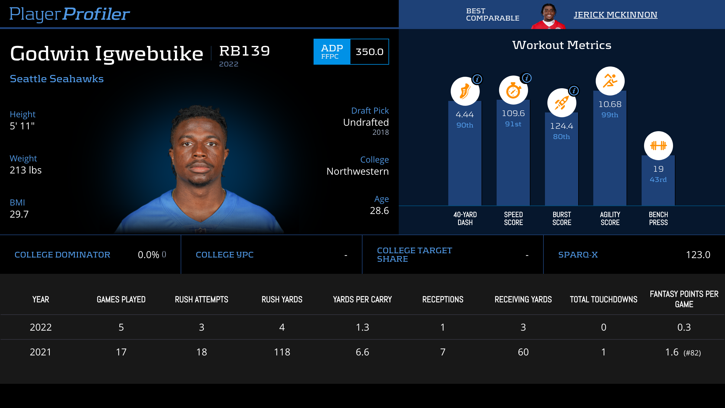 | 17 | SEA | 0.0% | -- | -- | -- | -- | -- | -- | 0.0 (#76) |