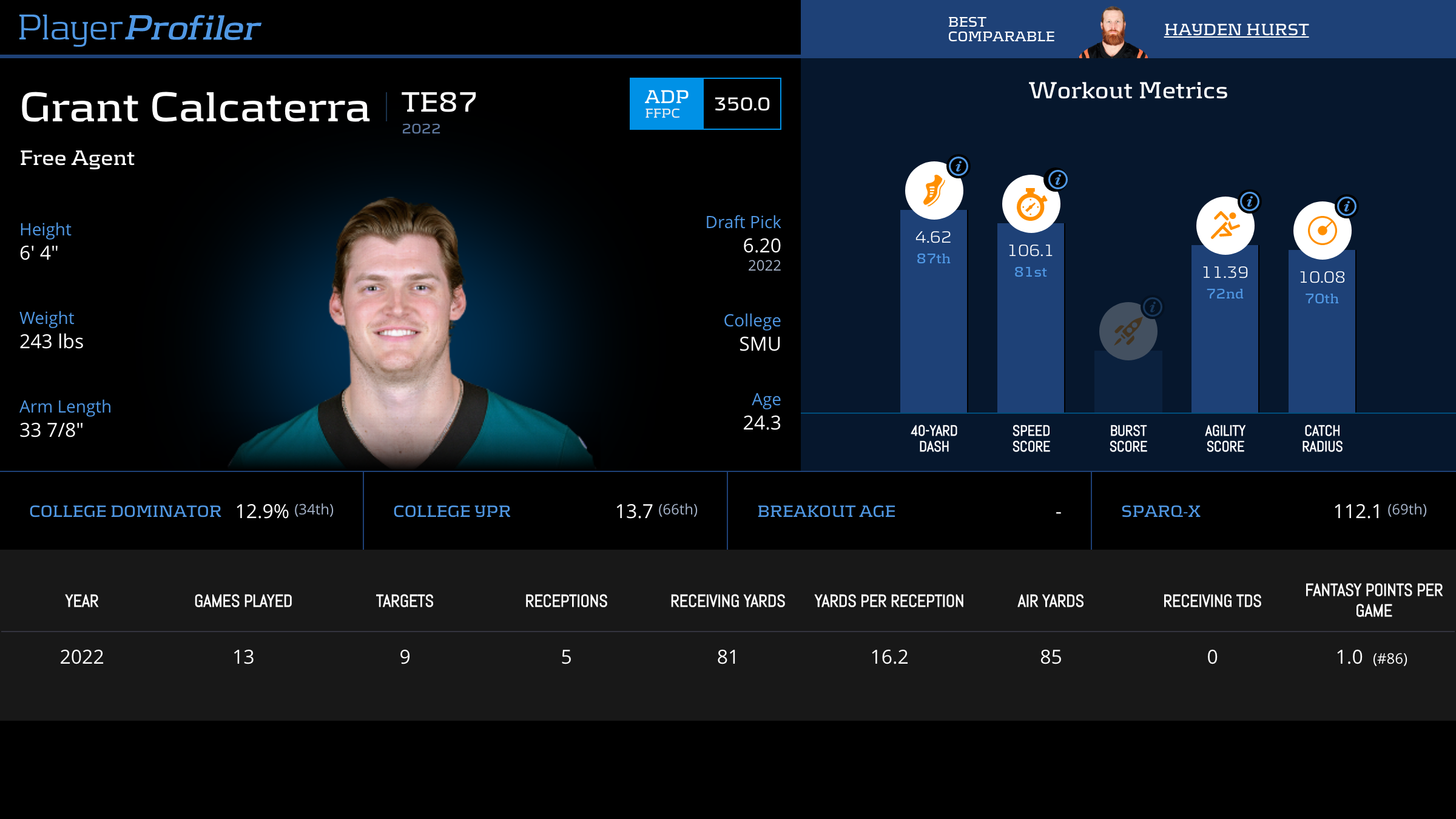 Box score statistics such as targets, yards, touchdowns, and fantasy points per target are updated the next day. Advanced stats and metrics are updated later in the week during the NFL season.