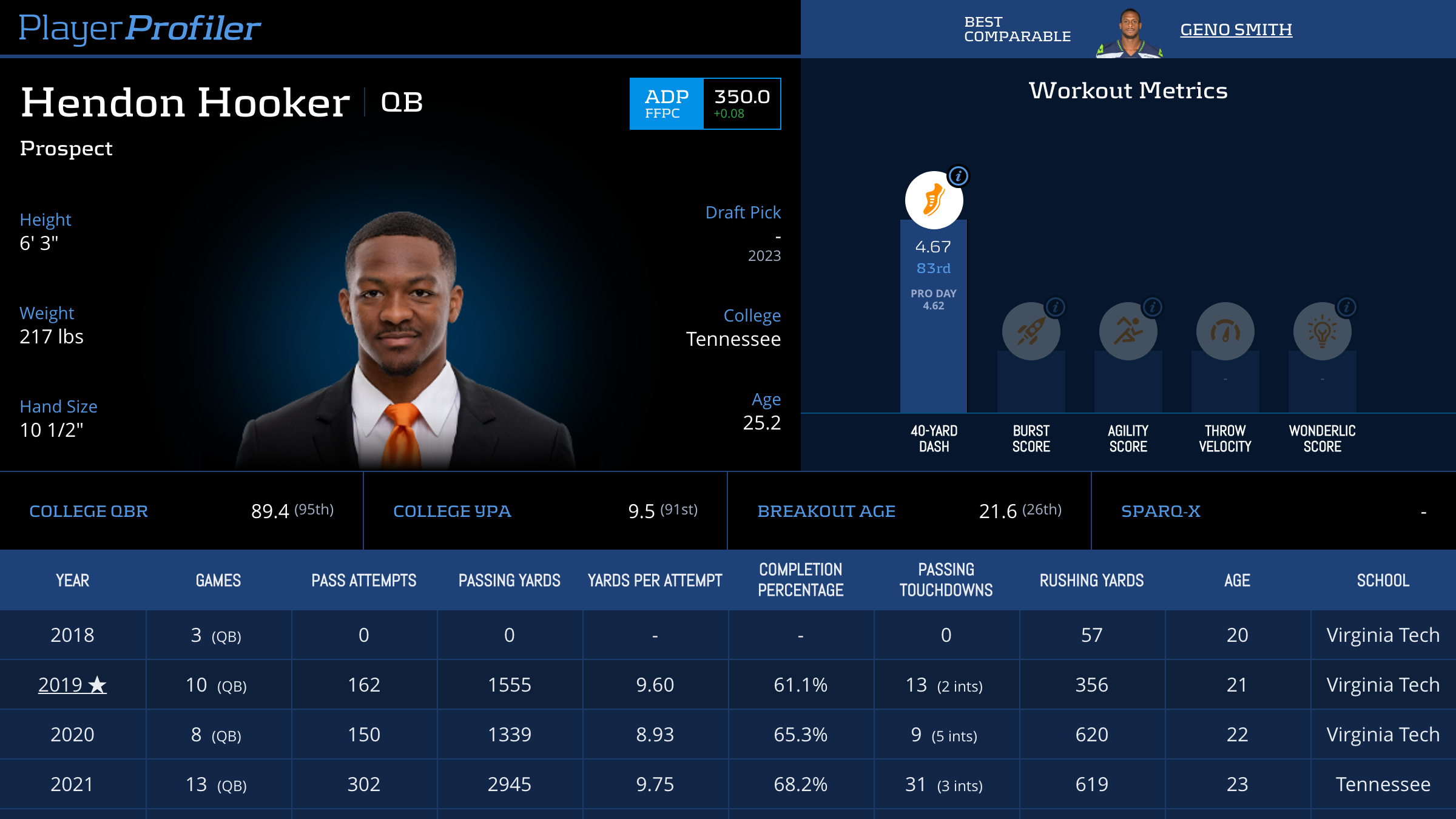| Year Year | Games Games | Pass Attempts Pass Atts | Passing Yards Pass Yds | Yards Per Attempt YPA | Completion Percentage Comp % | Passing Touchdowns Pass TDs | Rushing Yards Rush Yds | Age Age | School School |
