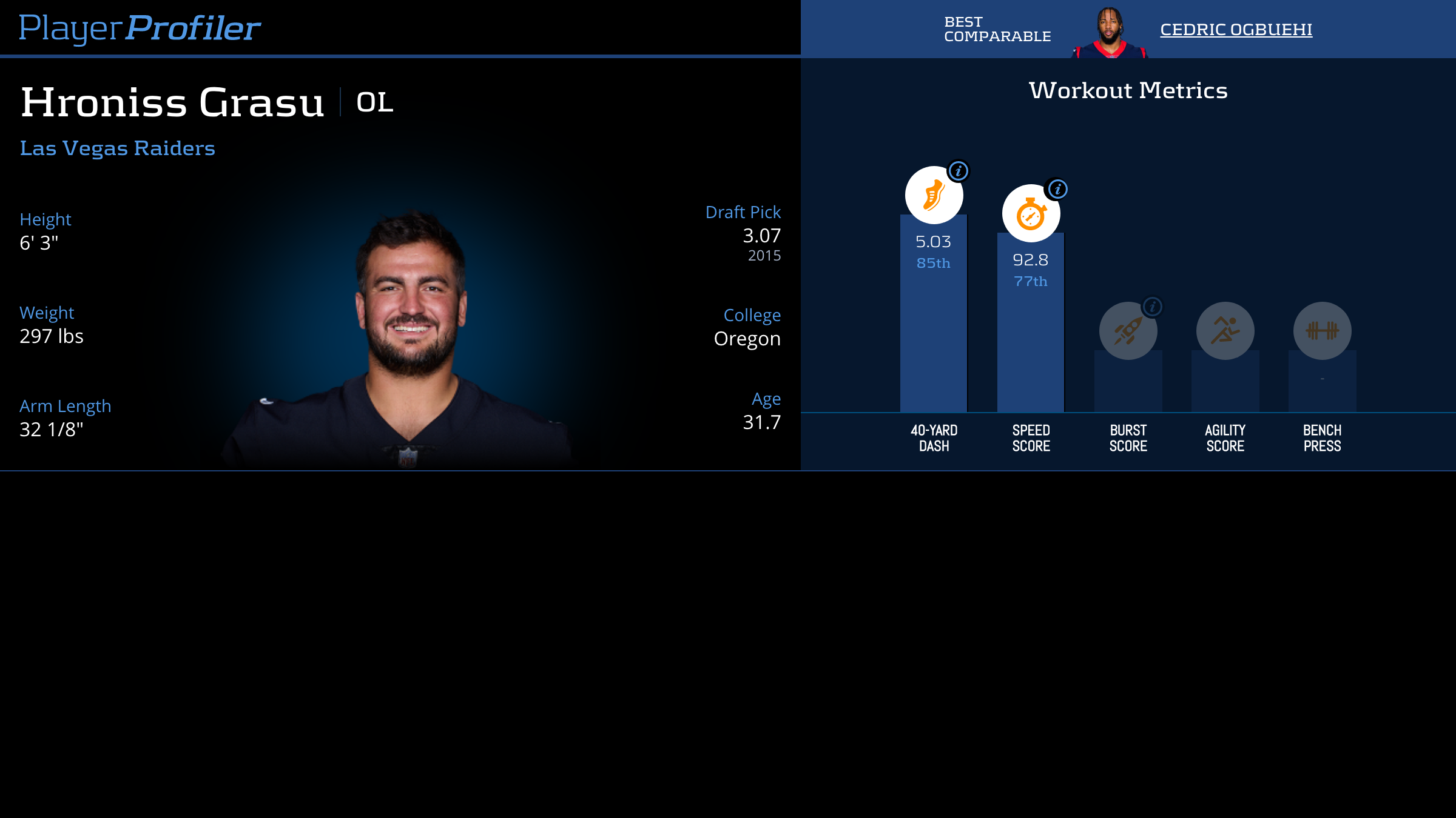 Download all Hroniss Grasu advanced stats and metrics with Data Analysis.