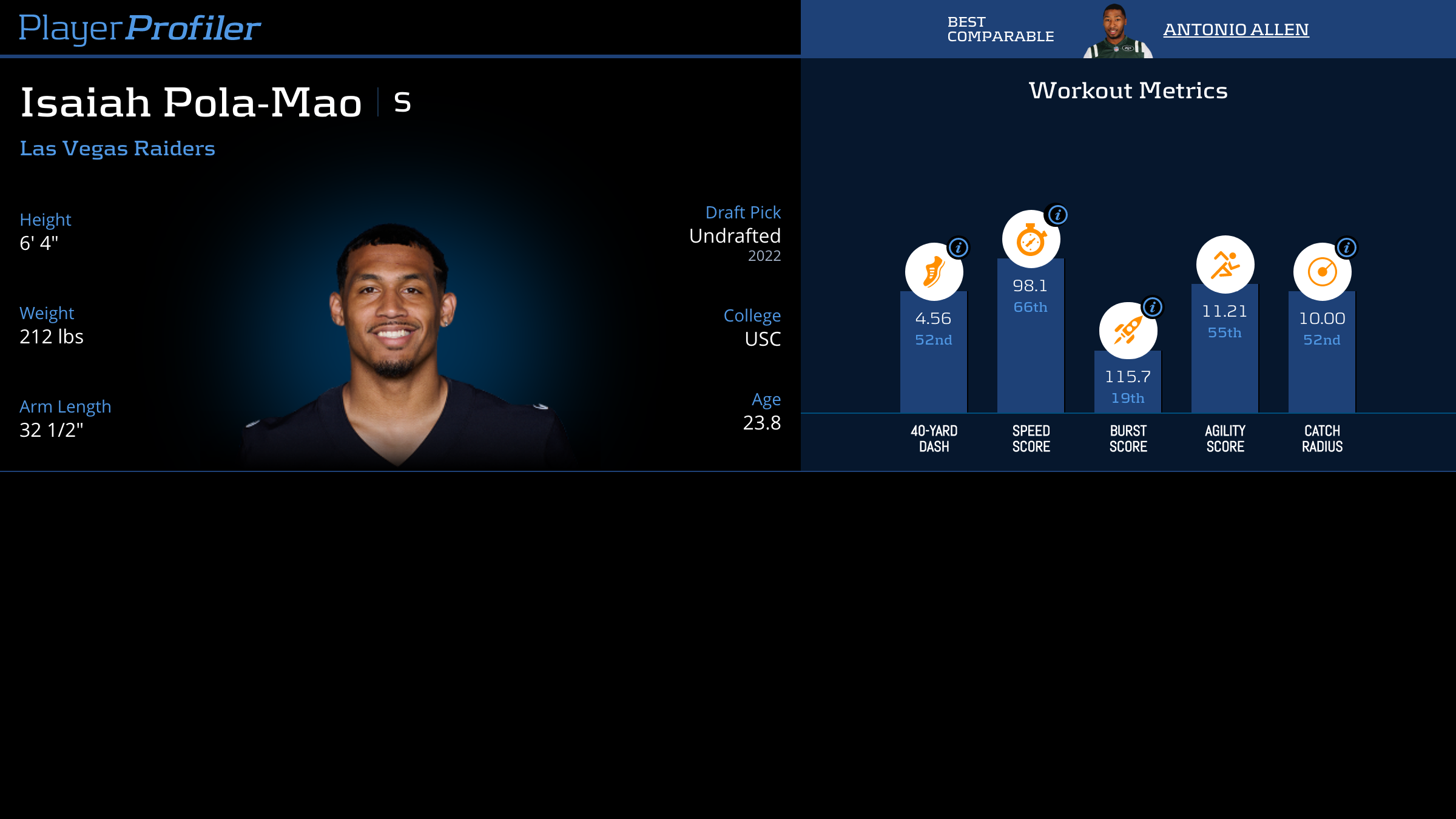 Download all Isaiah Pola-Mao advanced stats and metrics with Data Analysis.
