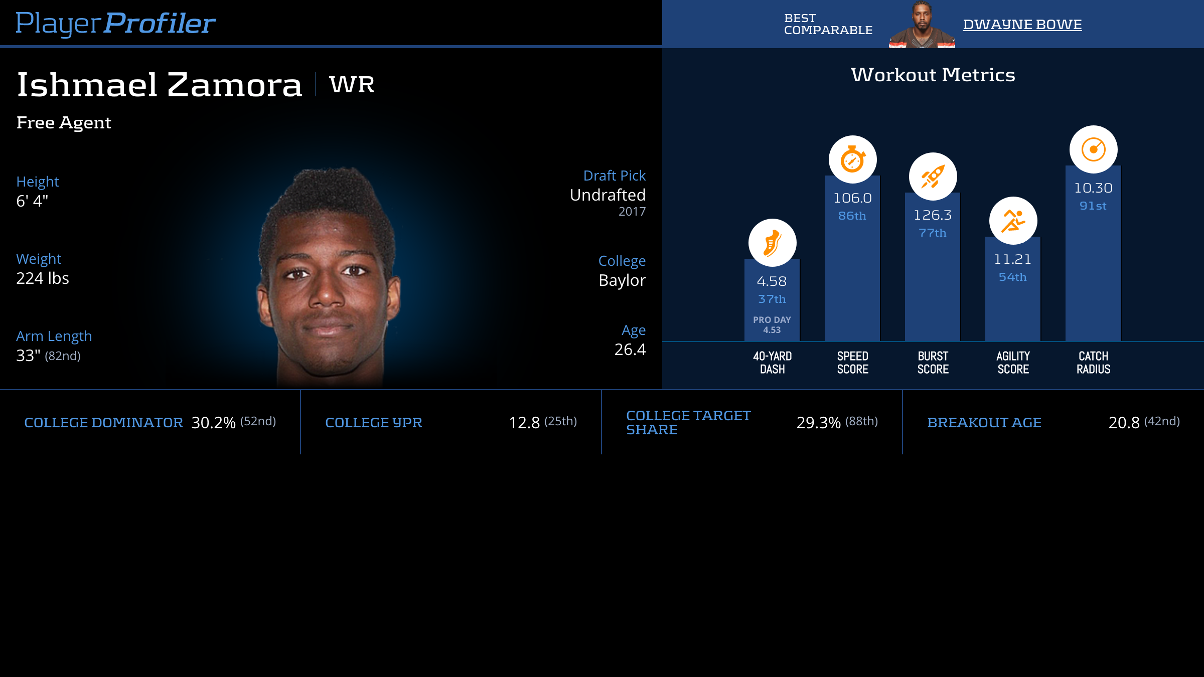 | Year Year | Games Games | Receptions Recs | Receiving Yards Rec Yds | Target Share Tgt Share | Catch Rate Catch Rate | Receiving Touchdowns Rec TDs | Special Teams Yards Special Teams | Age Age | School School |