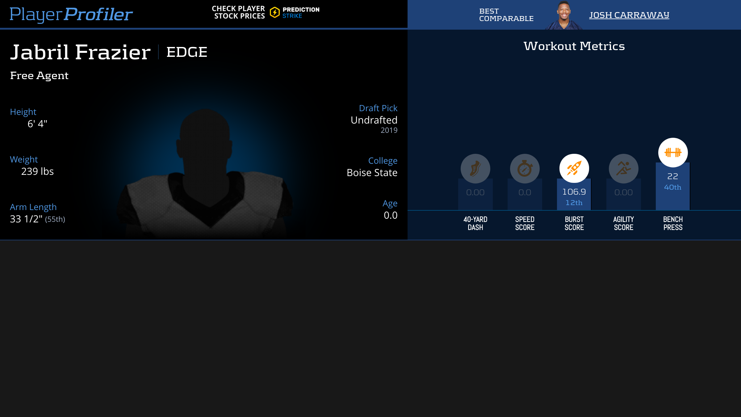 Download all Jabril Frazier advanced stats and metrics with Data Analysis.