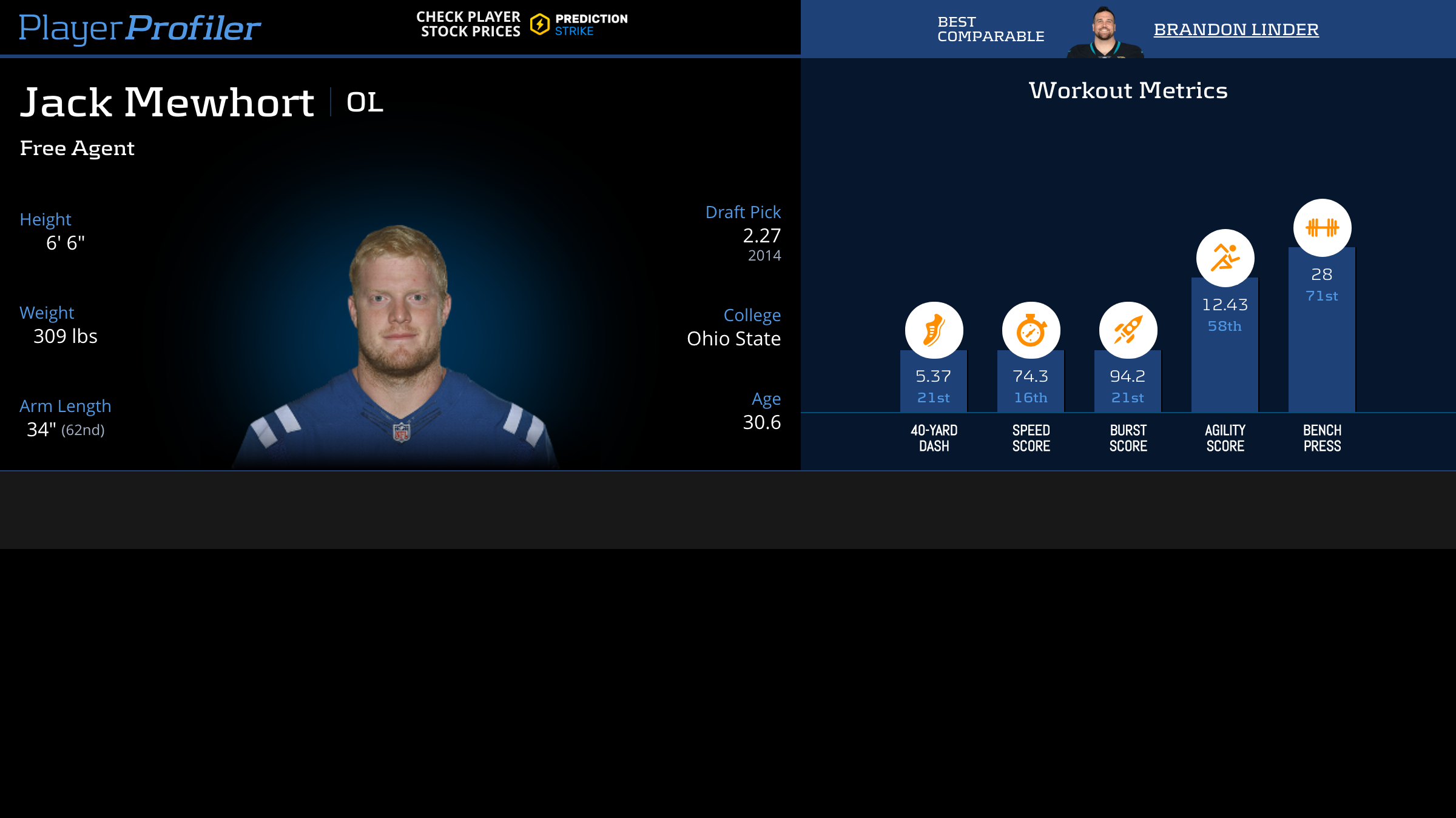 Download all Jack Mewhort advanced stats and metrics with Data Analysis.
