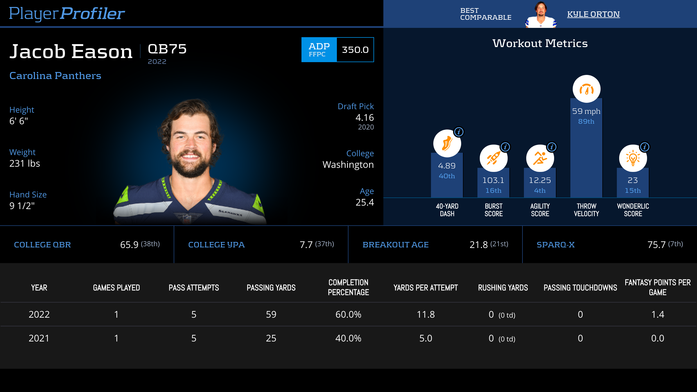 | Year Year | Games Games | Pass Attempts Pass Atts | Passing Yards Pass Yds | Yards Per Attempt YPA | Completion Percentage Comp % | Passing Touchdowns Pass TDs | Rushing Yards Rush Yds | Age Age | School School |