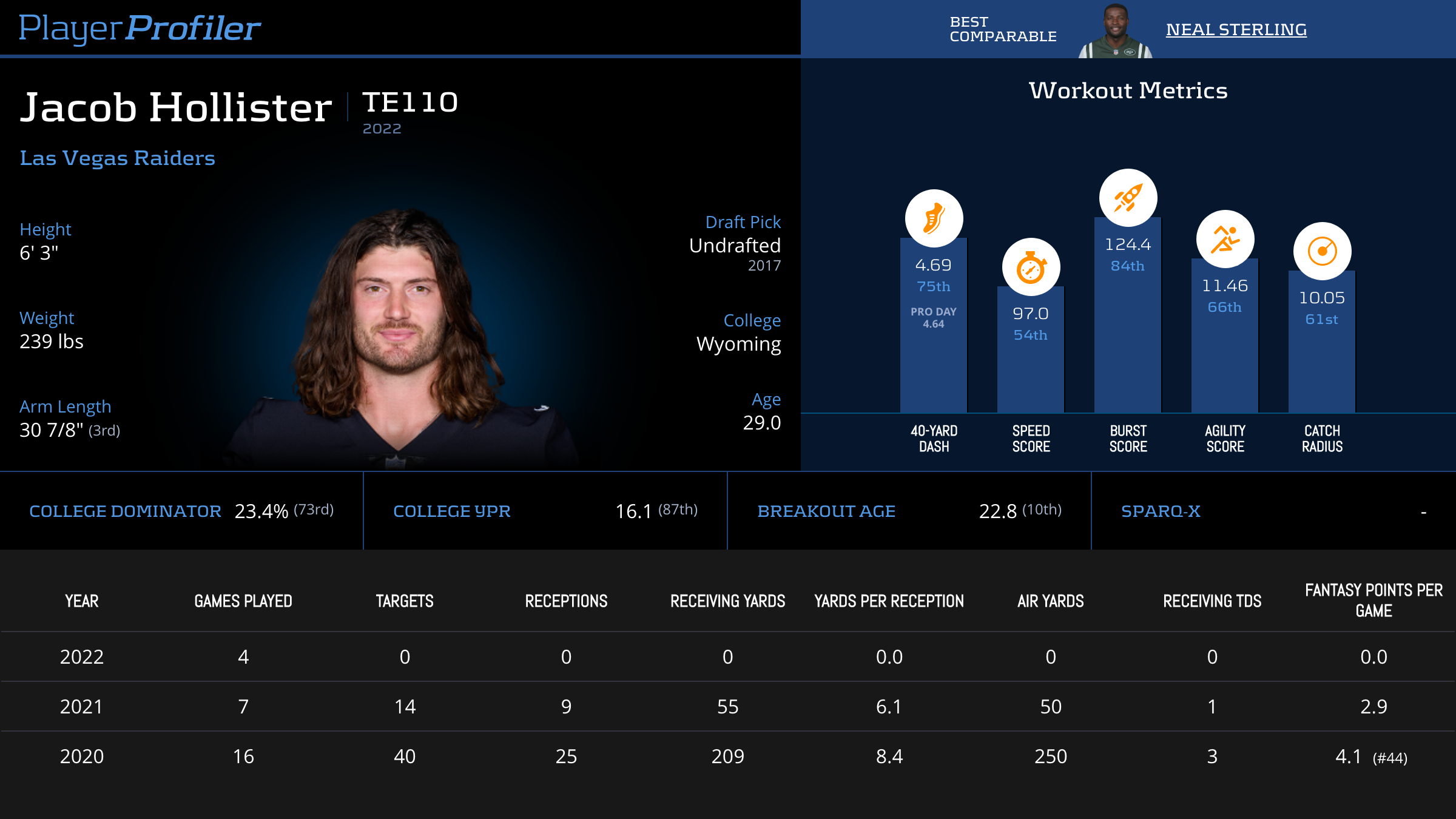 | Year Year | Games Games | Receptions Recs | Receiving Yards Rec Yds | Target Share Tgt Share | Catch Rate Catch Rate | Receiving Touchdowns Rec TDs | Special Teams Yards Special Teams | Age Age | School School |