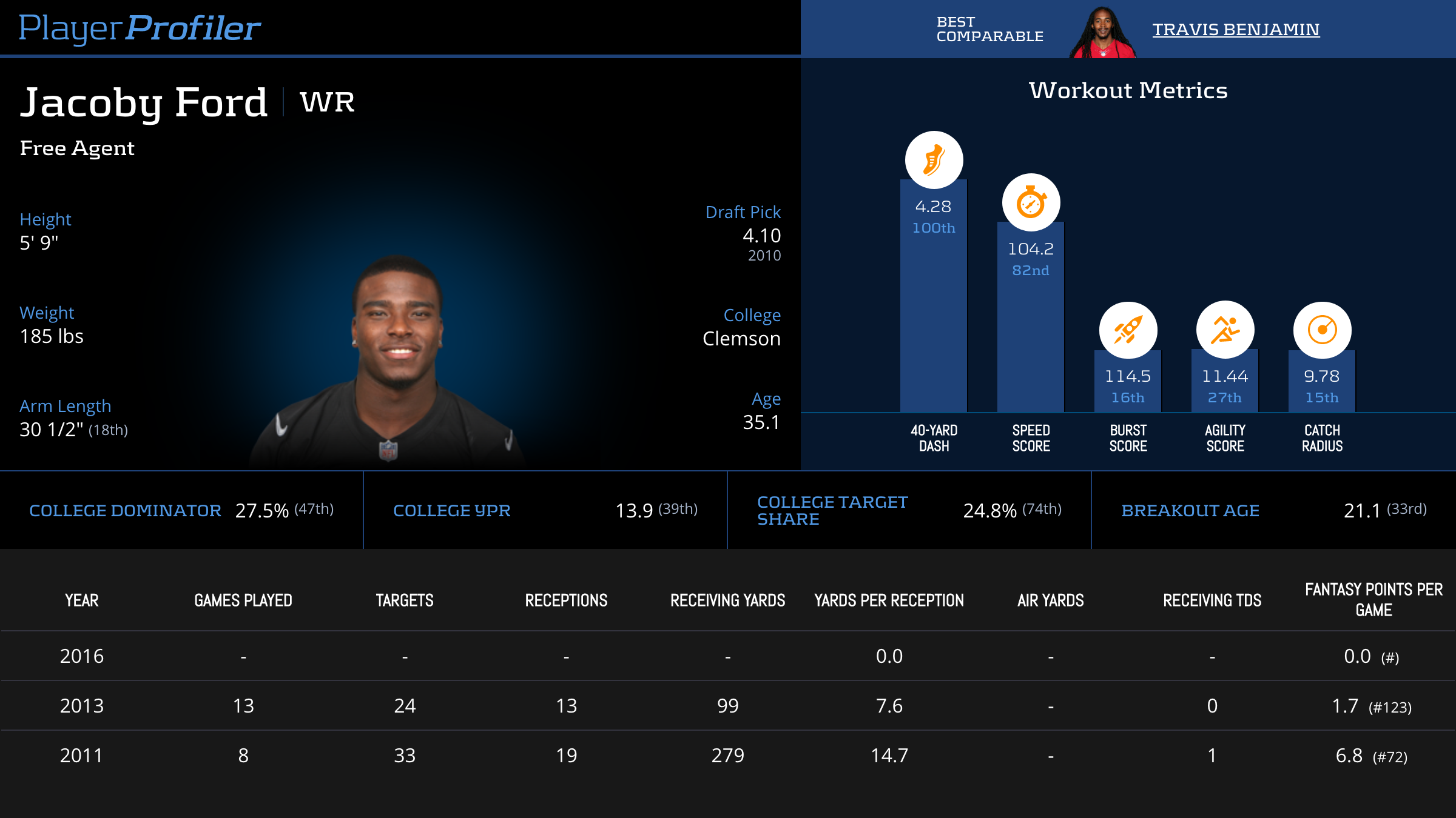 | Year Year | Games Games | Receptions Recs | Receiving Yards Rec Yds | Target Share Tgt Share | Catch Rate Catch Rate | Receiving Touchdowns Rec TDs | Special Teams Yards Special Teams | Age Age | School School |