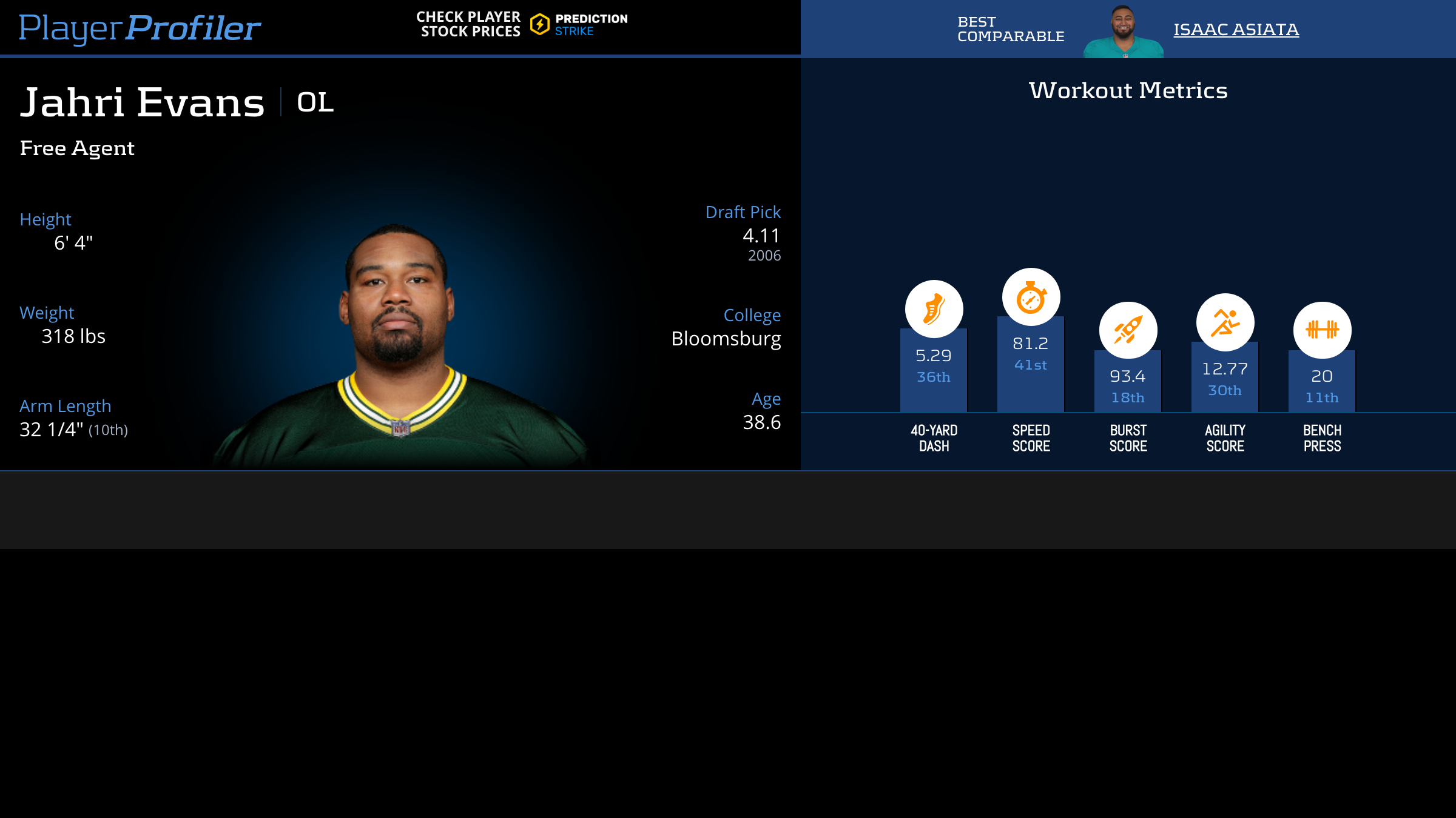 Download all Jahri Evans advanced stats and metrics with Data Analysis.
