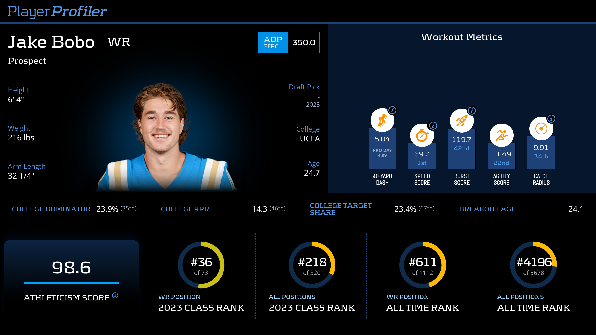 | 4 | ARI | Jalen Thompson | 15.2% | 2 (6.9% rate) | 1 | 1 | 17 (13 air) | 2.7 (#92) |