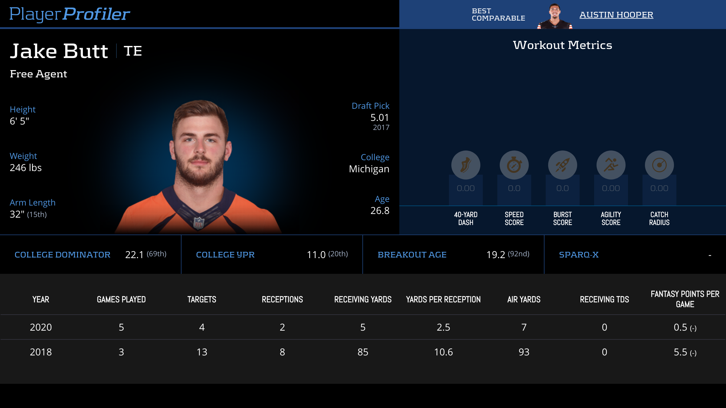 Box score statistics such as targets, yards, touchdowns, and fantasy points per target are updated the next day. Advanced stats and metrics are updated later in the week during the NFL season.