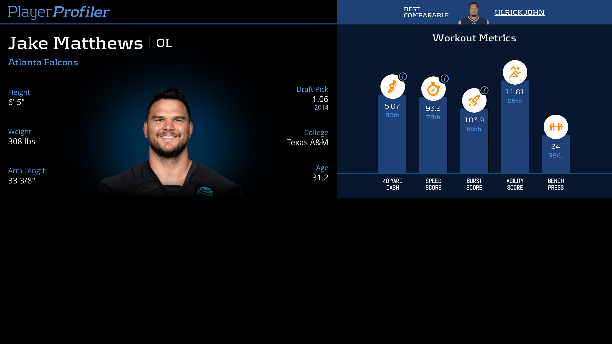 Download all Jake Matthews advanced stats and metrics with Data Analysis.