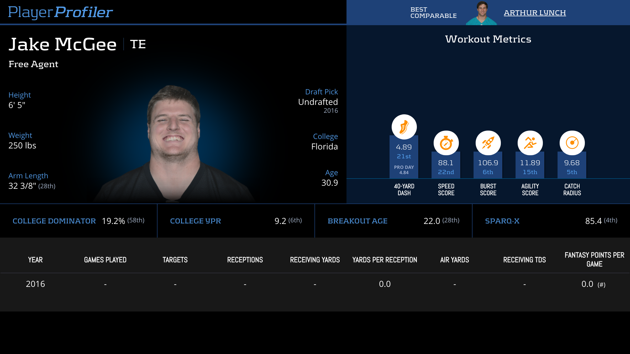 | Year Year | Games Games | Receptions Recs | Receiving Yards Rec Yds | Target Share Tgt Share | Catch Rate Catch Rate | Receiving Touchdowns Rec TDs | Special Teams Yards Special Teams | Age Age | School School |