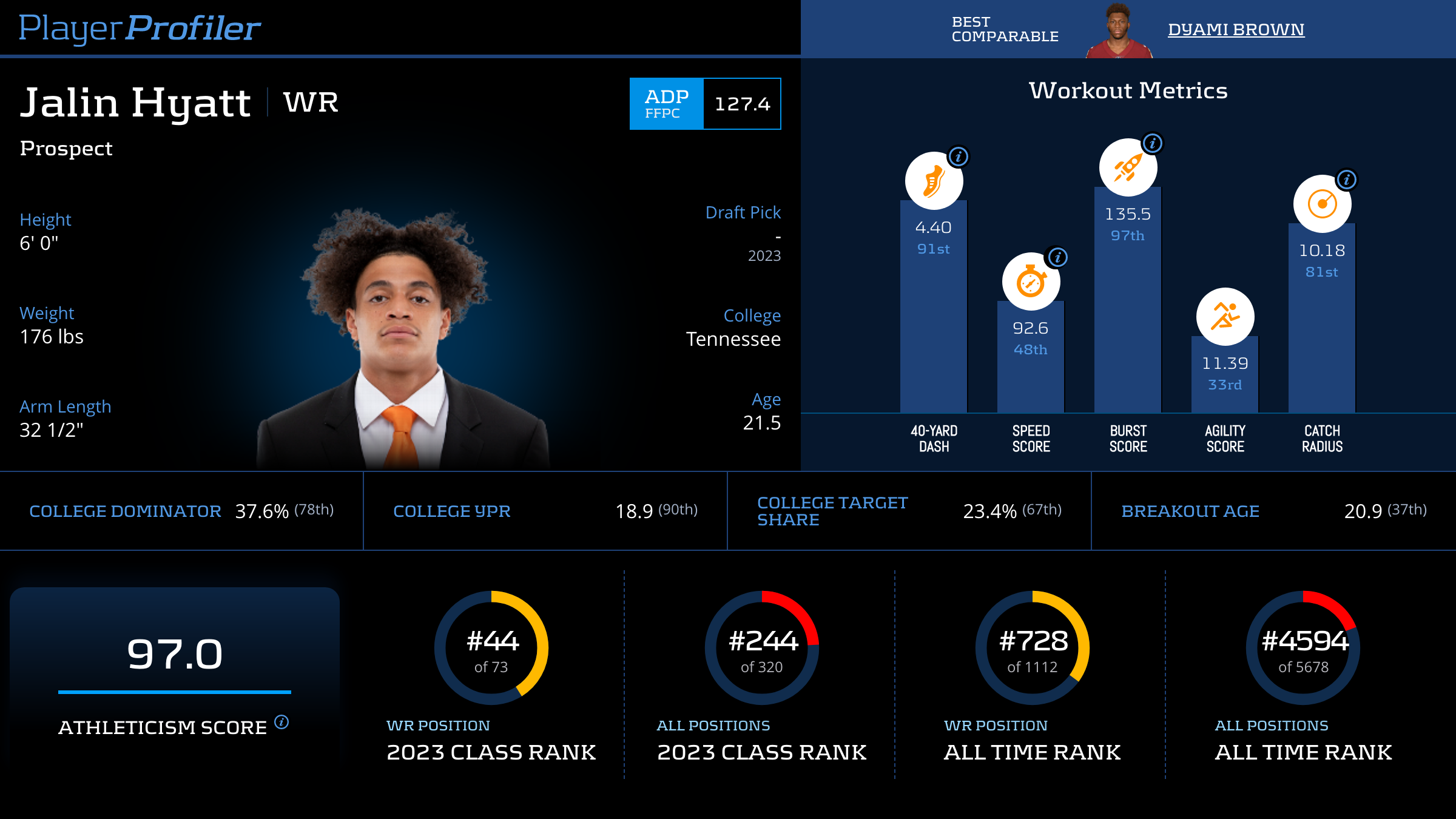 | 9 | SF | 0.0% | -- | -- | -- | -- | 0.0 (#98) | |