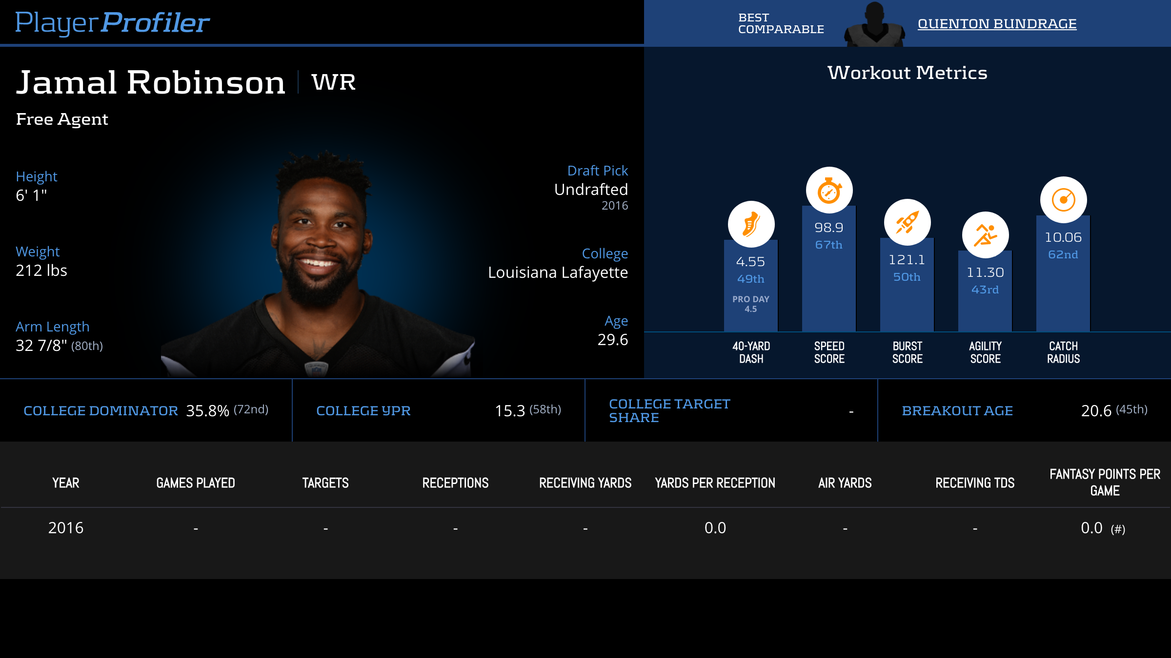 Year Games Tgts Rec Rec Yds YPR Air Yds Rec TD Fantasy Pts/Game